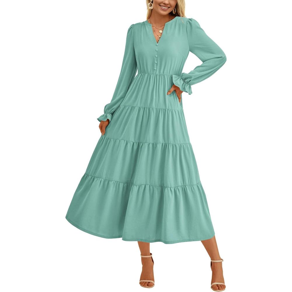 Be the first to review “PRETTYGARDEN Long Sleeve Dress for Women 2025 Fall V Neck Tiered Aline Spring Elegant Modest Flowy Wedding Guest Maxi Dresses(Light Green)”