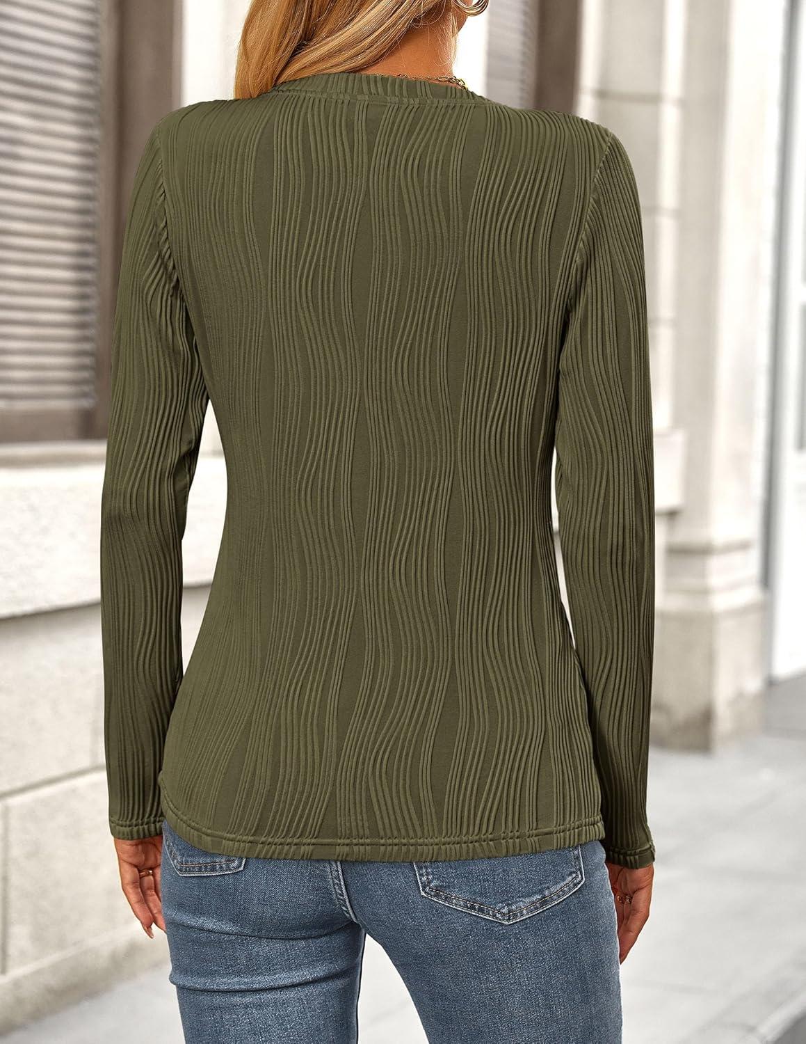 PRETTYGARDEN Long Sleeve Tops for Women 2025 Spring Fall Trendy Business Dressy Casual Shirts Crewneck Textured Blouse(Army Green)