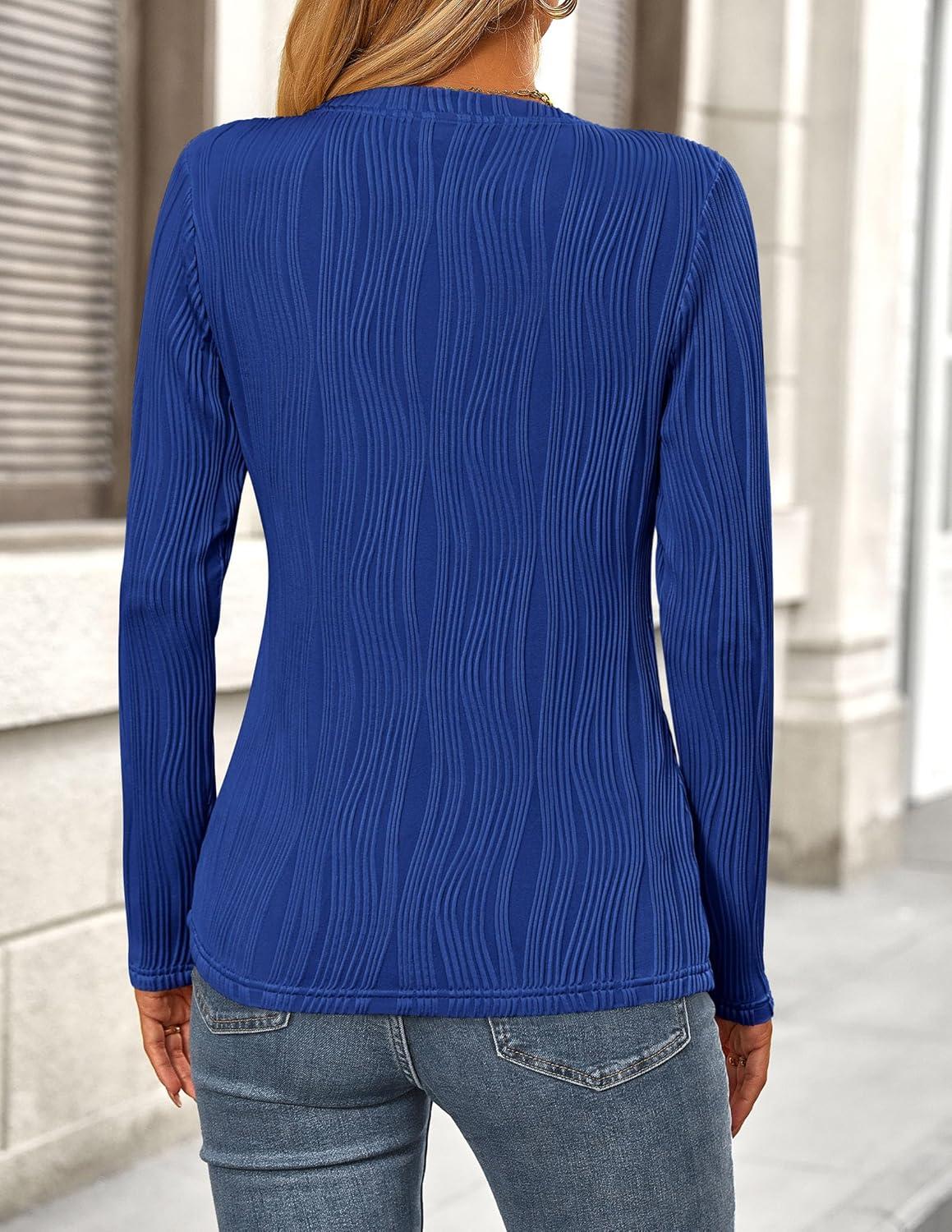 PRETTYGARDEN Long Sleeve Tops for Women 2025 Spring Fall Trendy Business Dressy Casual Shirts Crewneck Textured Blouse(Brilliant Blue)