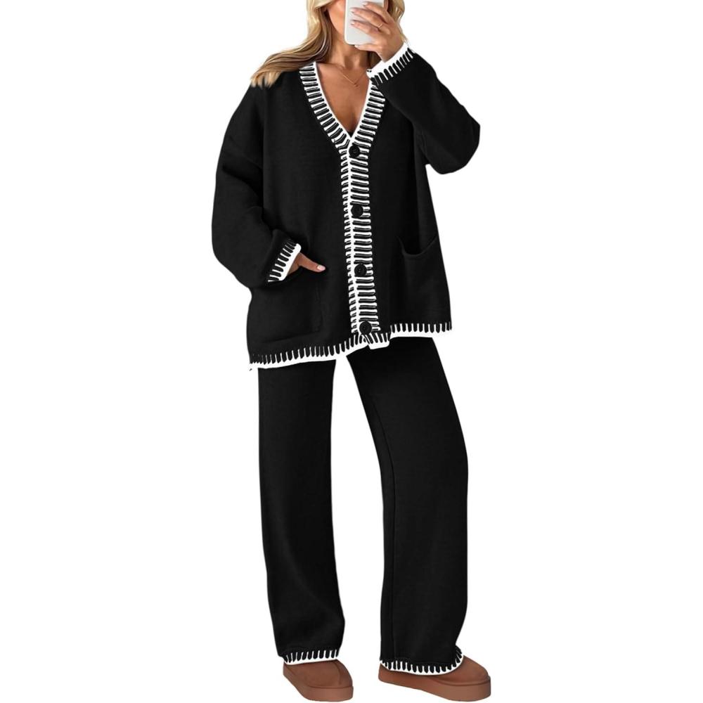 PRETTYGARDEN Lounge Sets for Women Fall 2025 Loungewear 2 Piece Outfits Cardigan Sweaters Track Suit Matching Winter Clothing(Black)