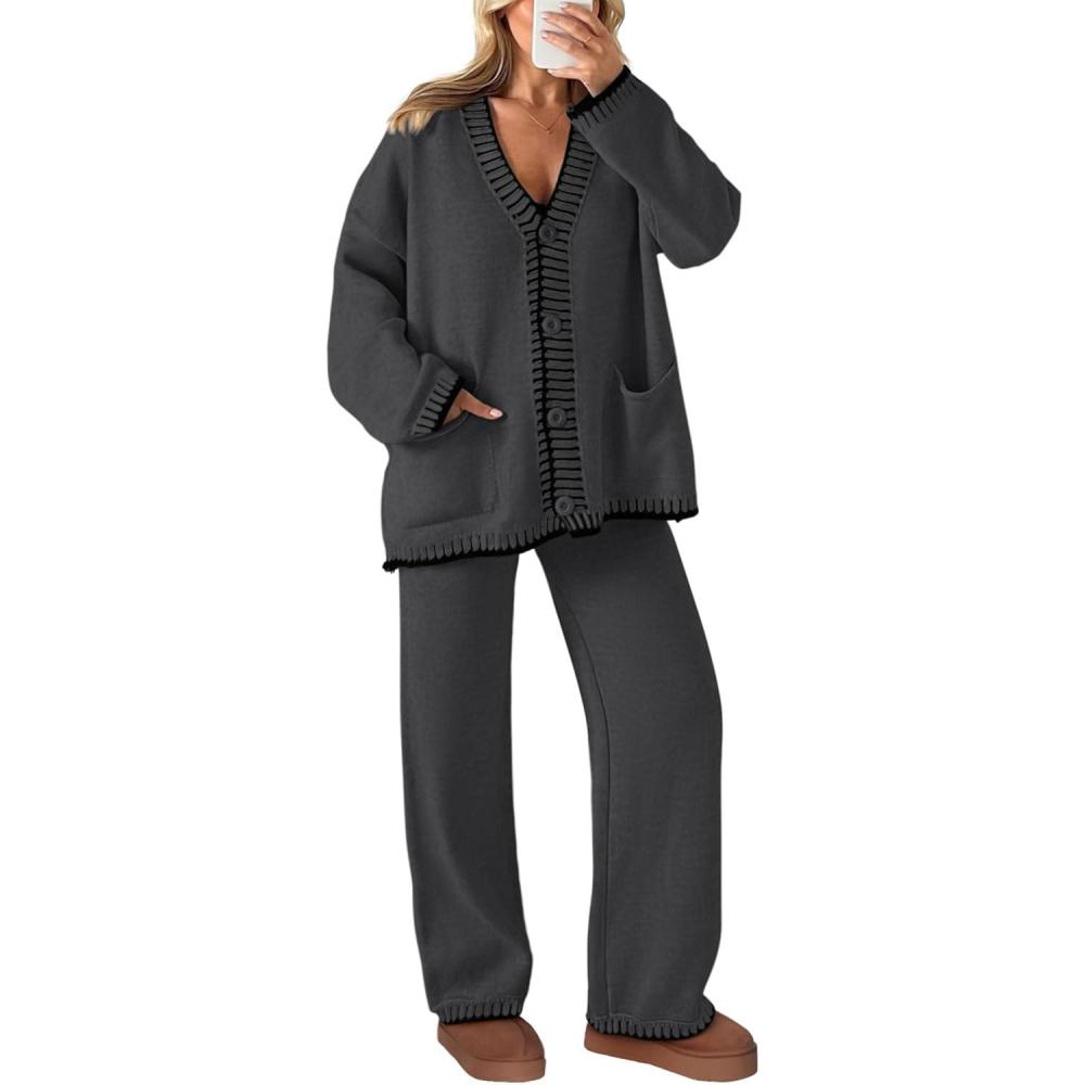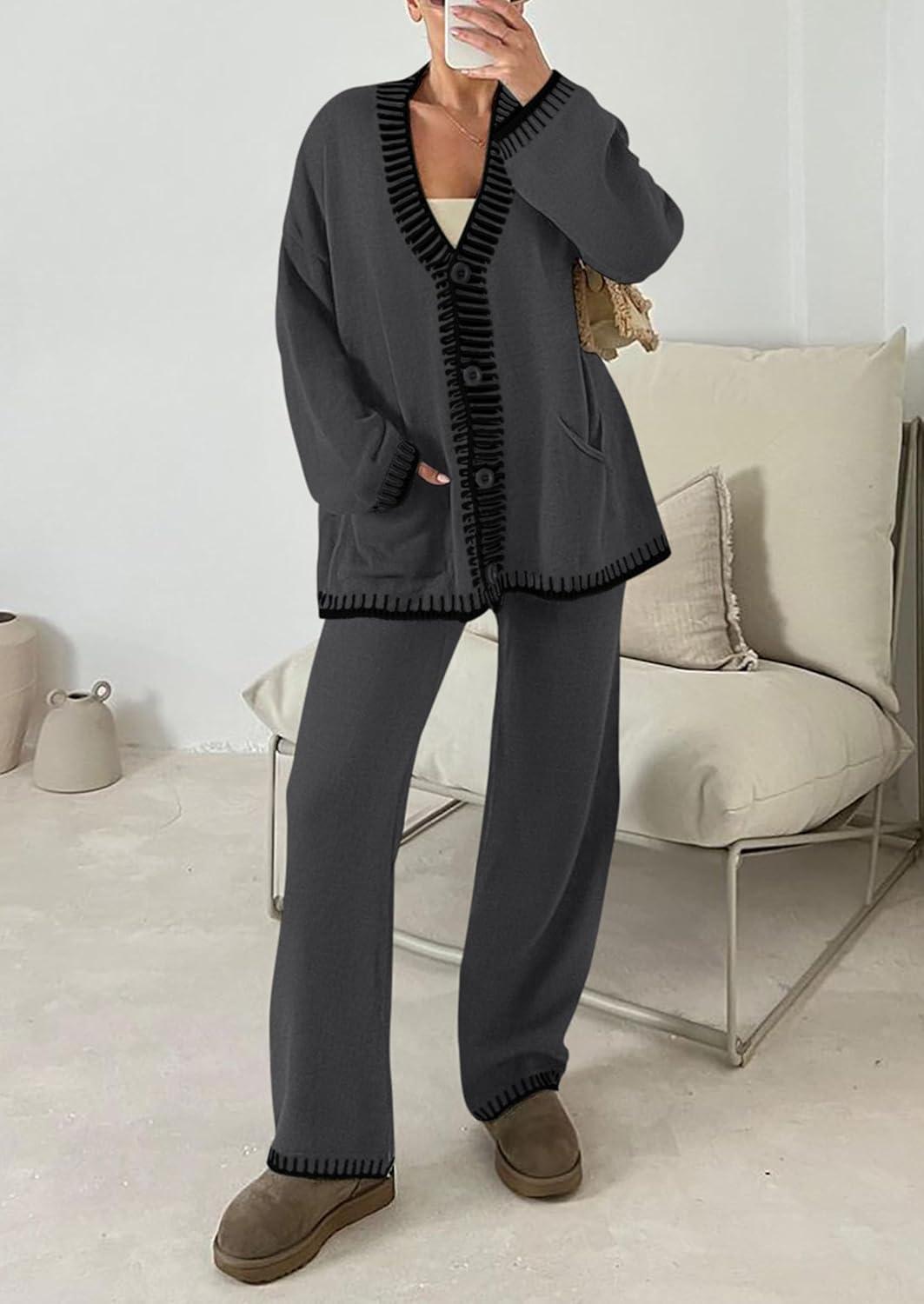PRETTYGARDEN Lounge Sets for Women Fall 2025 Loungewear 2 Piece Outfits Cardigan Sweaters Track Suit Matching Winter Clothing(Dark Grey)