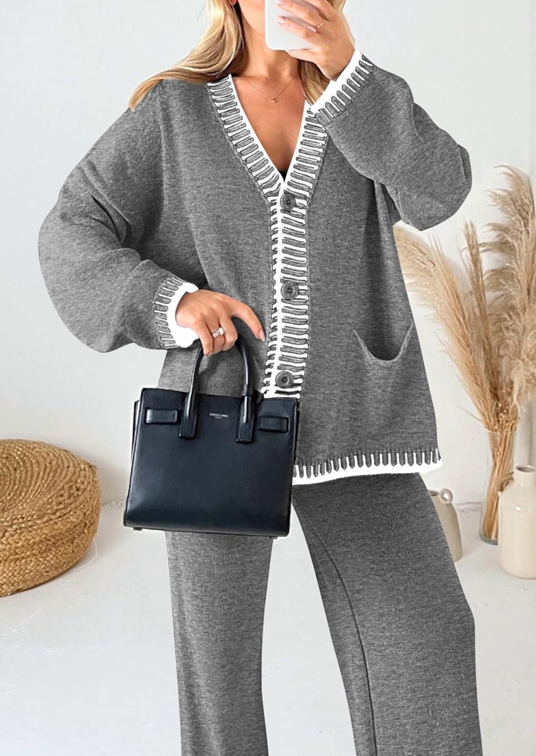 PRETTYGARDEN Lounge Sets for Women Fall 2025 Loungewear 2 Piece Outfits Cardigan Sweaters Track Suit Matching Winter Clothing(Grey)