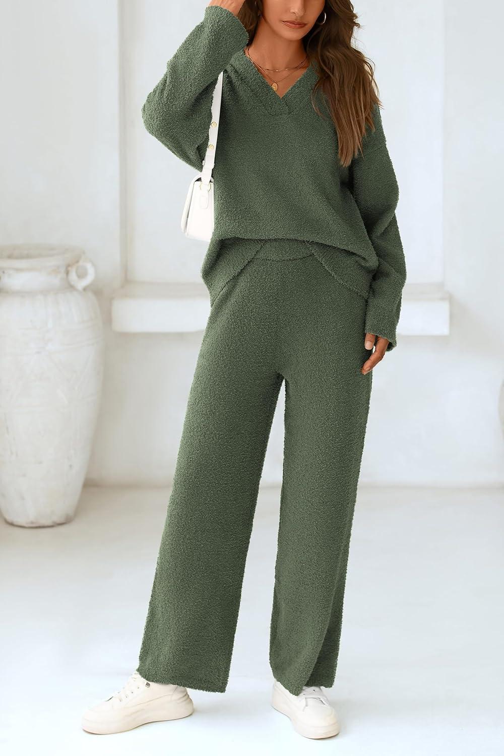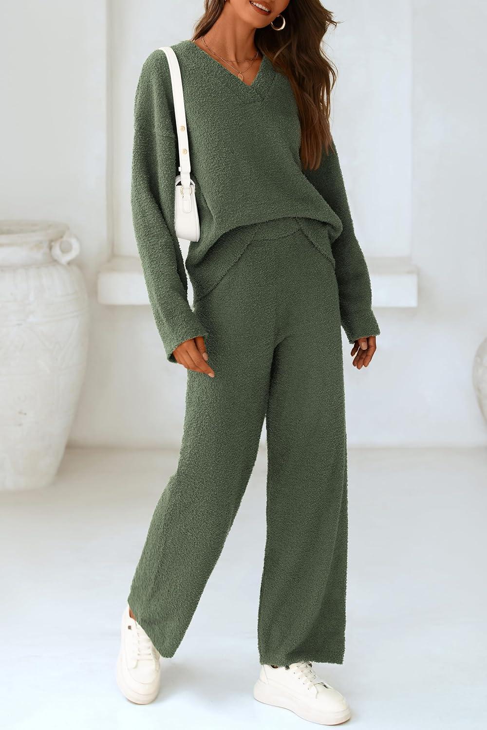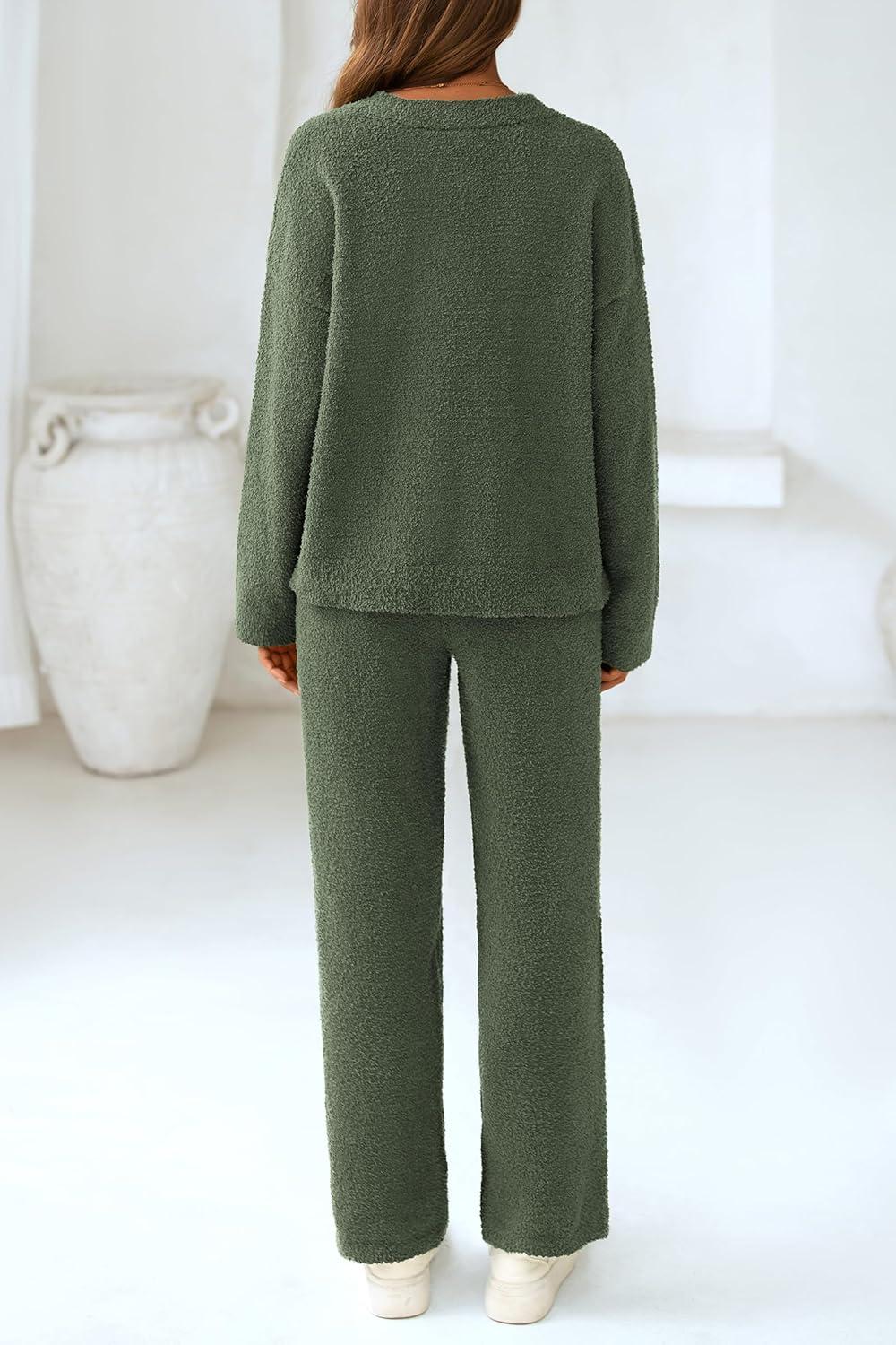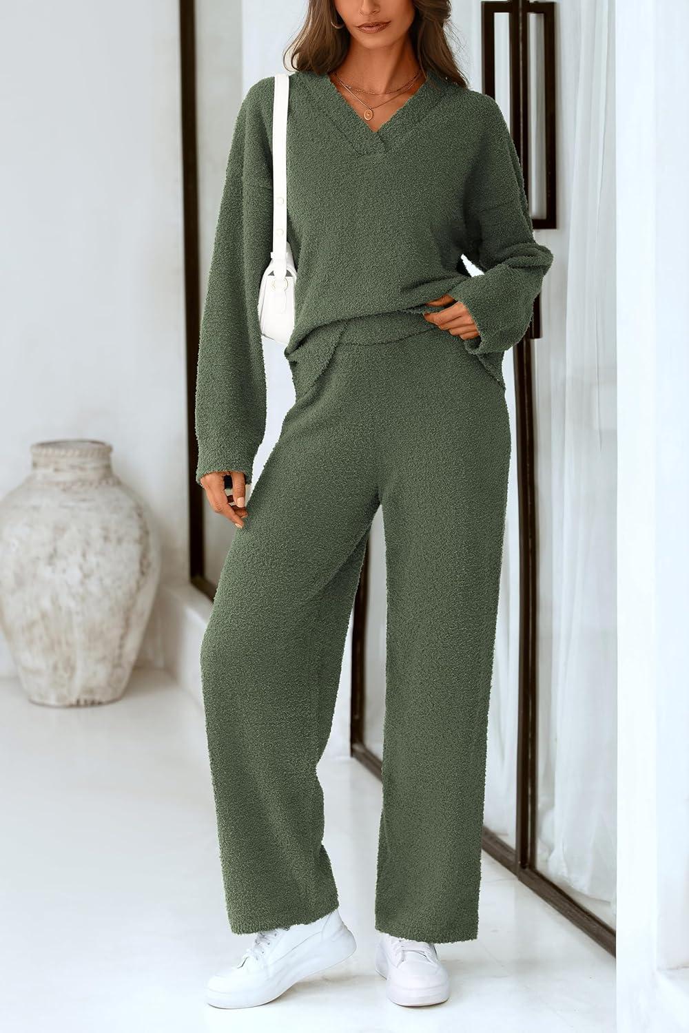 PRETTYGARDEN Lounge Sets for Women Two Piece Sweaters Pajama Set Fall Fashion 2025 Loungewear Outfits Matching Winter Clothes(Army Green)