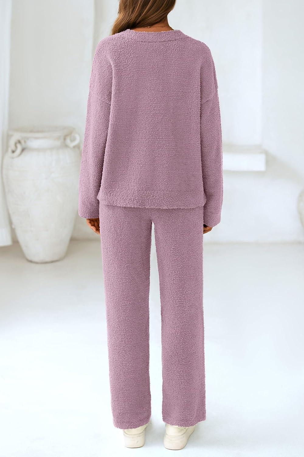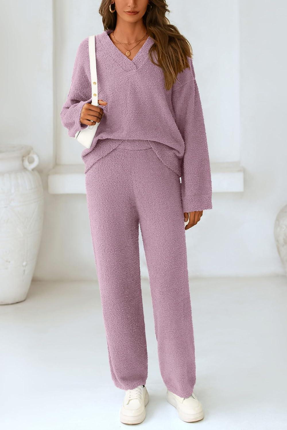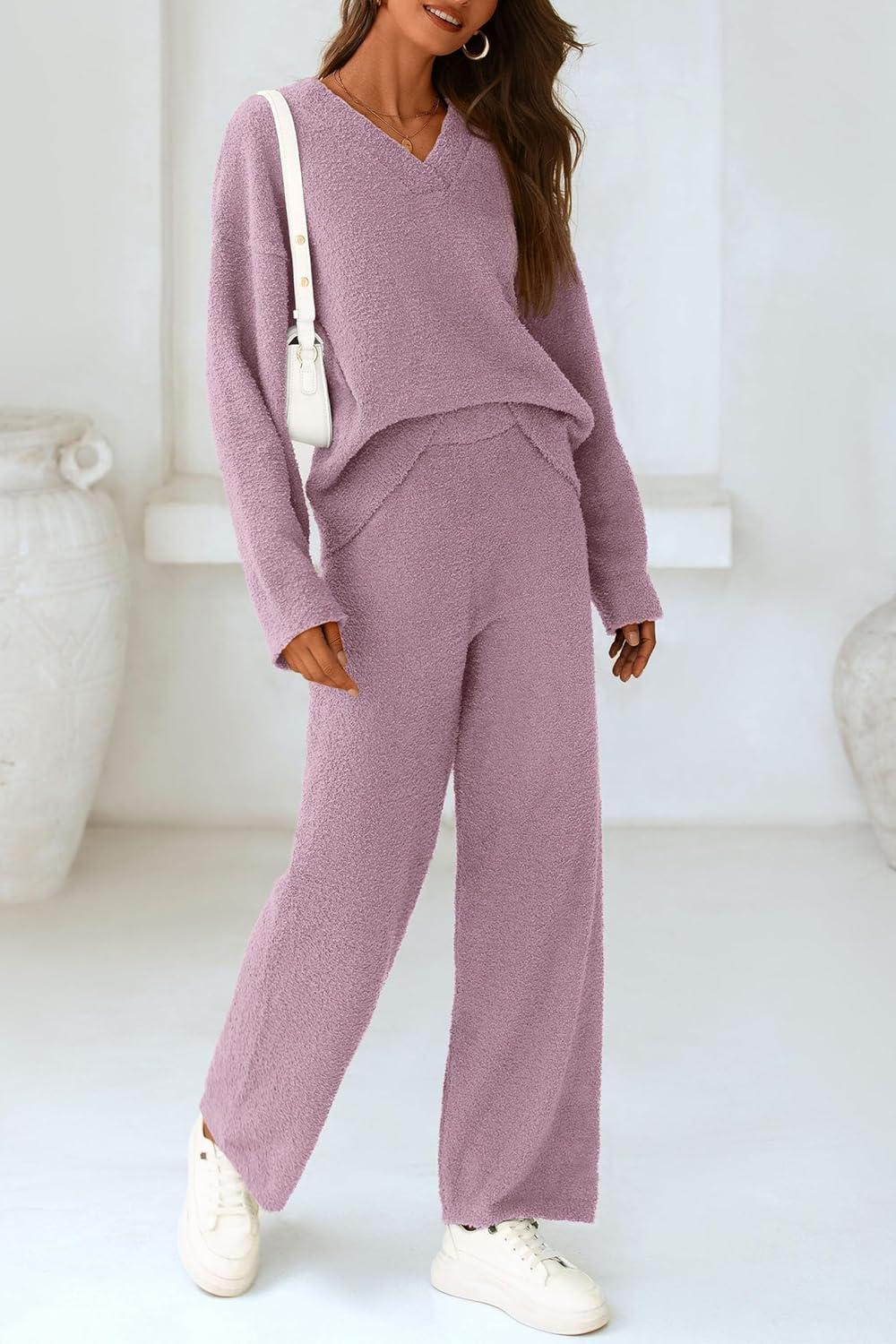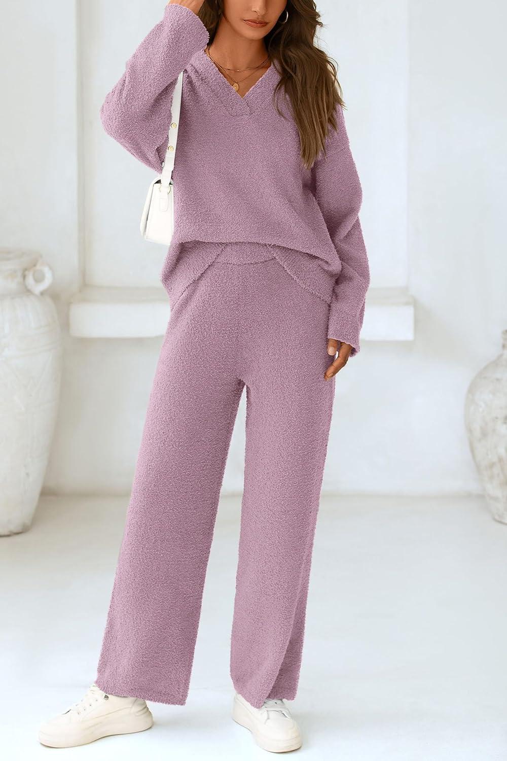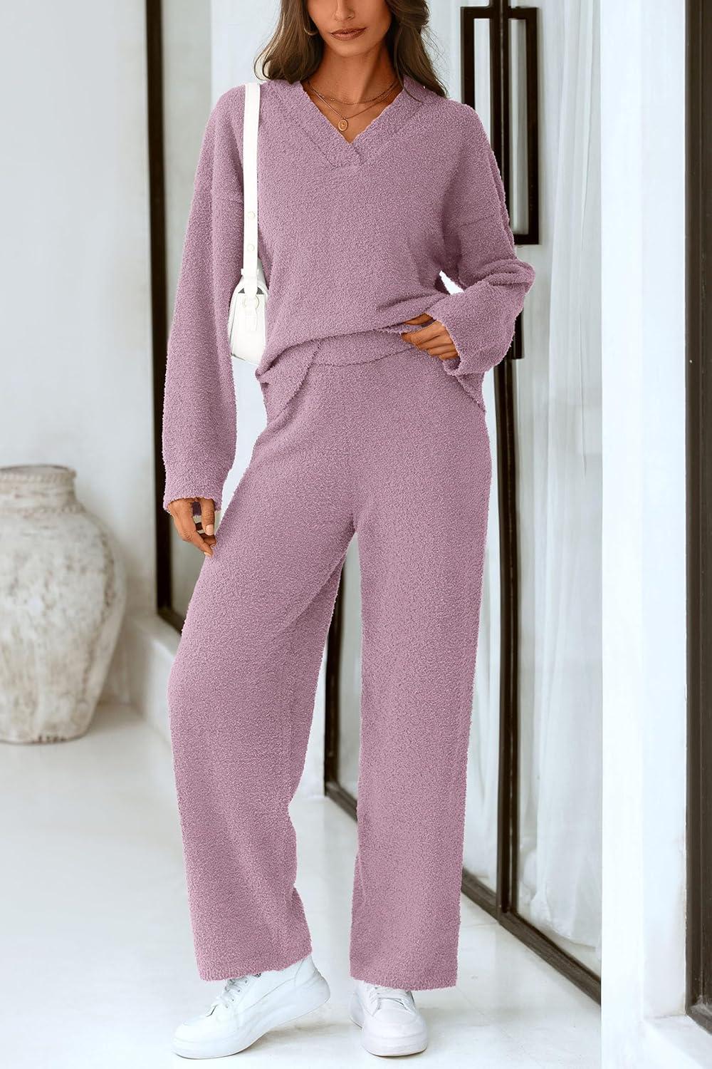 PRETTYGARDEN Lounge Sets for Women Two Piece Sweaters Pajama Set Fall Fashion 2025 Loungewear Outfits Matching Winter Clothes(Bean Paste Purple)