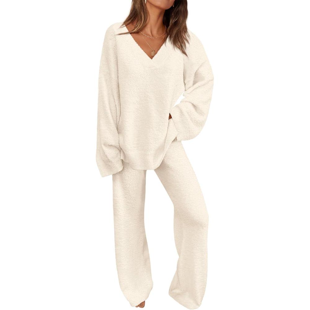 PRETTYGARDEN Lounge Sets for Women Two Piece Sweaters Pajama Set Fall Fashion 2025 Loungewear Outfits Matching Winter Clothes(Beige)