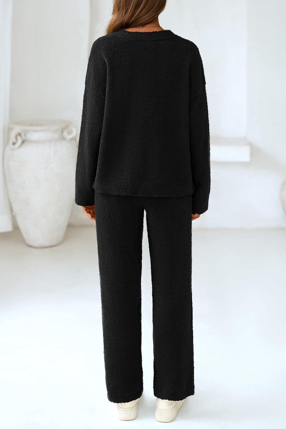 PRETTYGARDEN Lounge Sets for Women Two Piece Sweaters Pajama Set Fall Fashion 2025 Loungewear Outfits Matching Winter Clothes(Black)