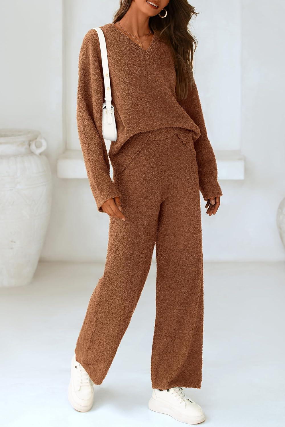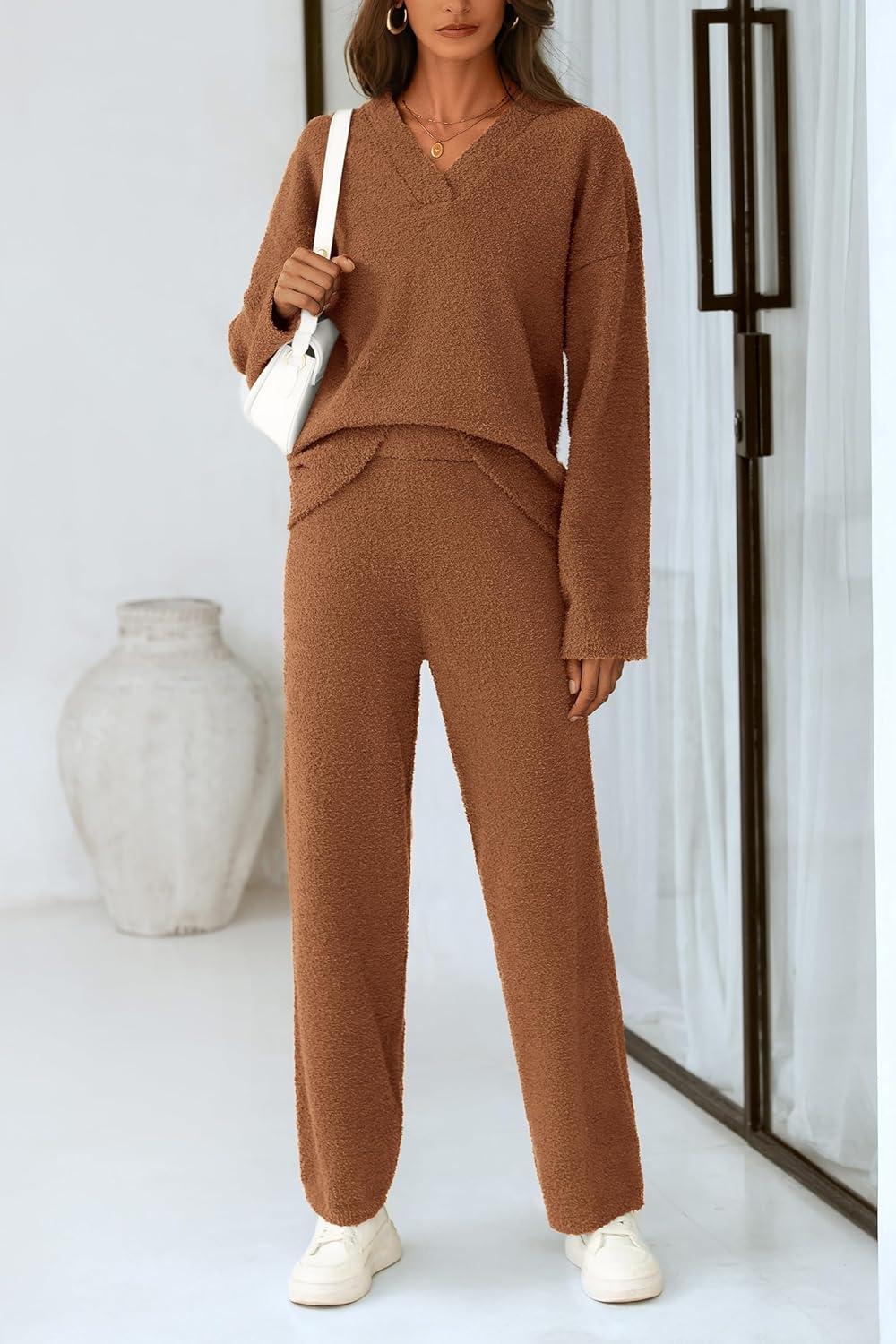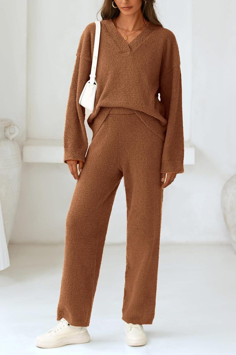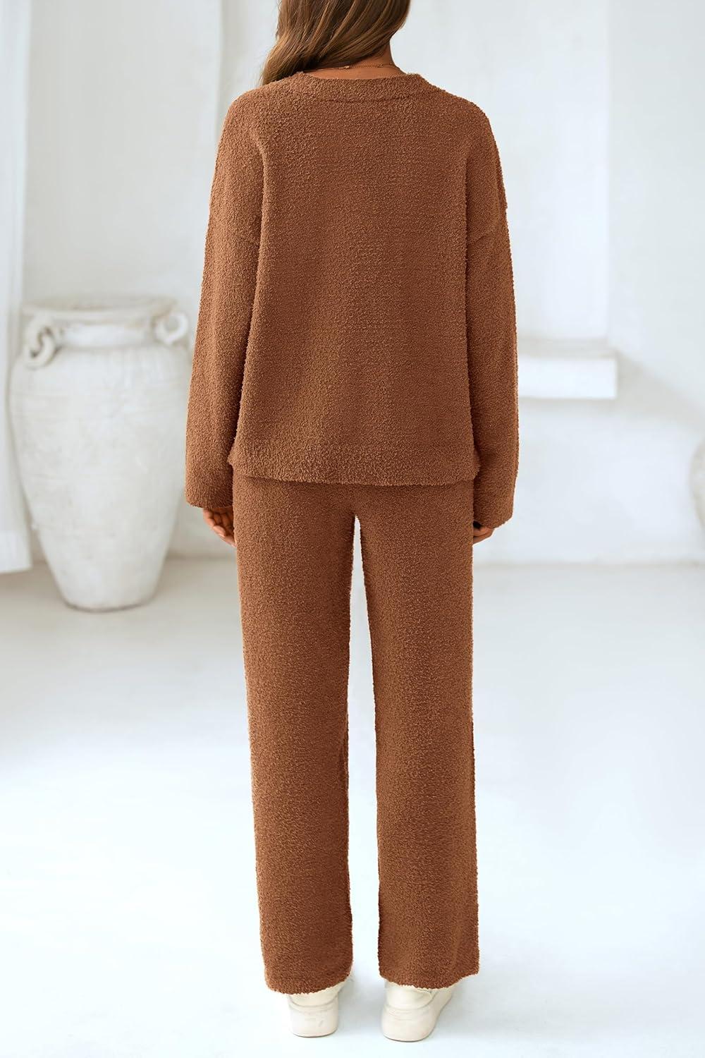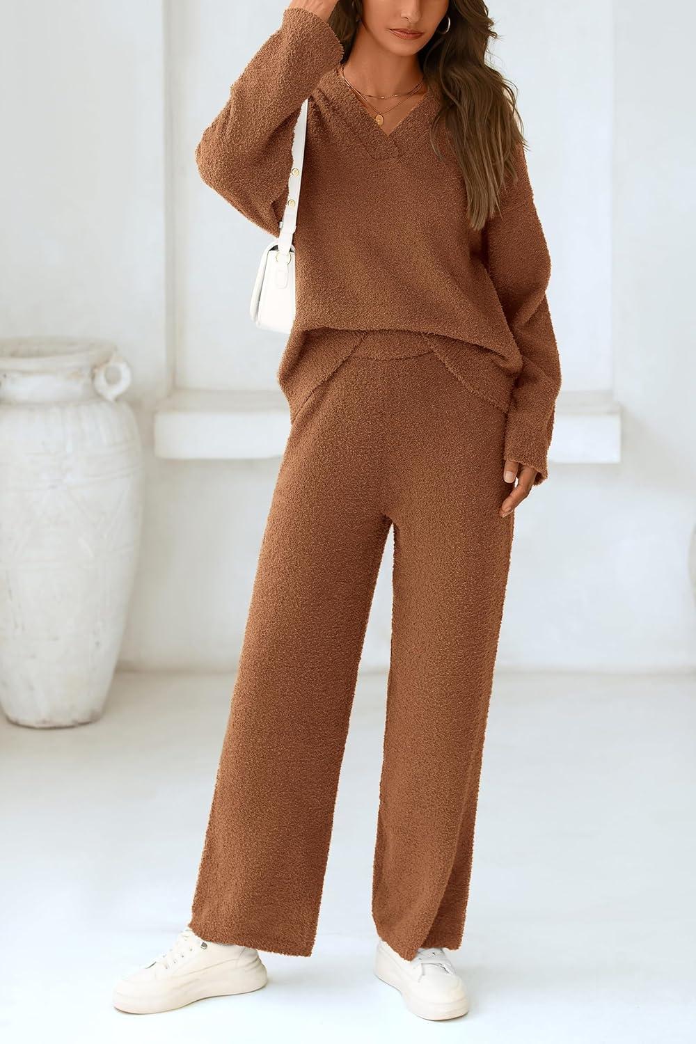 PRETTYGARDEN Lounge Sets for Women Two Piece Sweaters Pajama Set Fall Fashion 2025 Loungewear Outfits Matching Winter Clothes(Brown)
