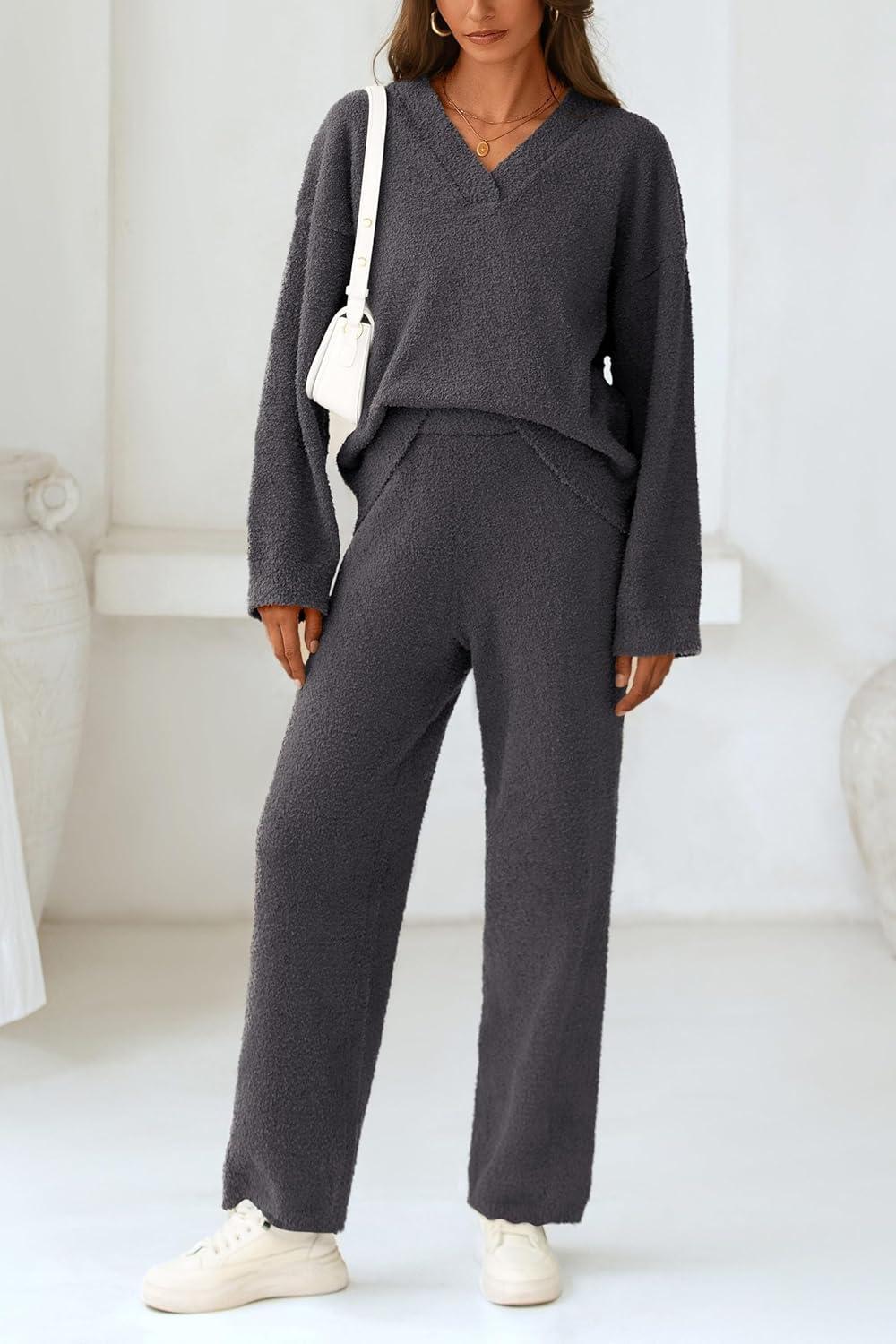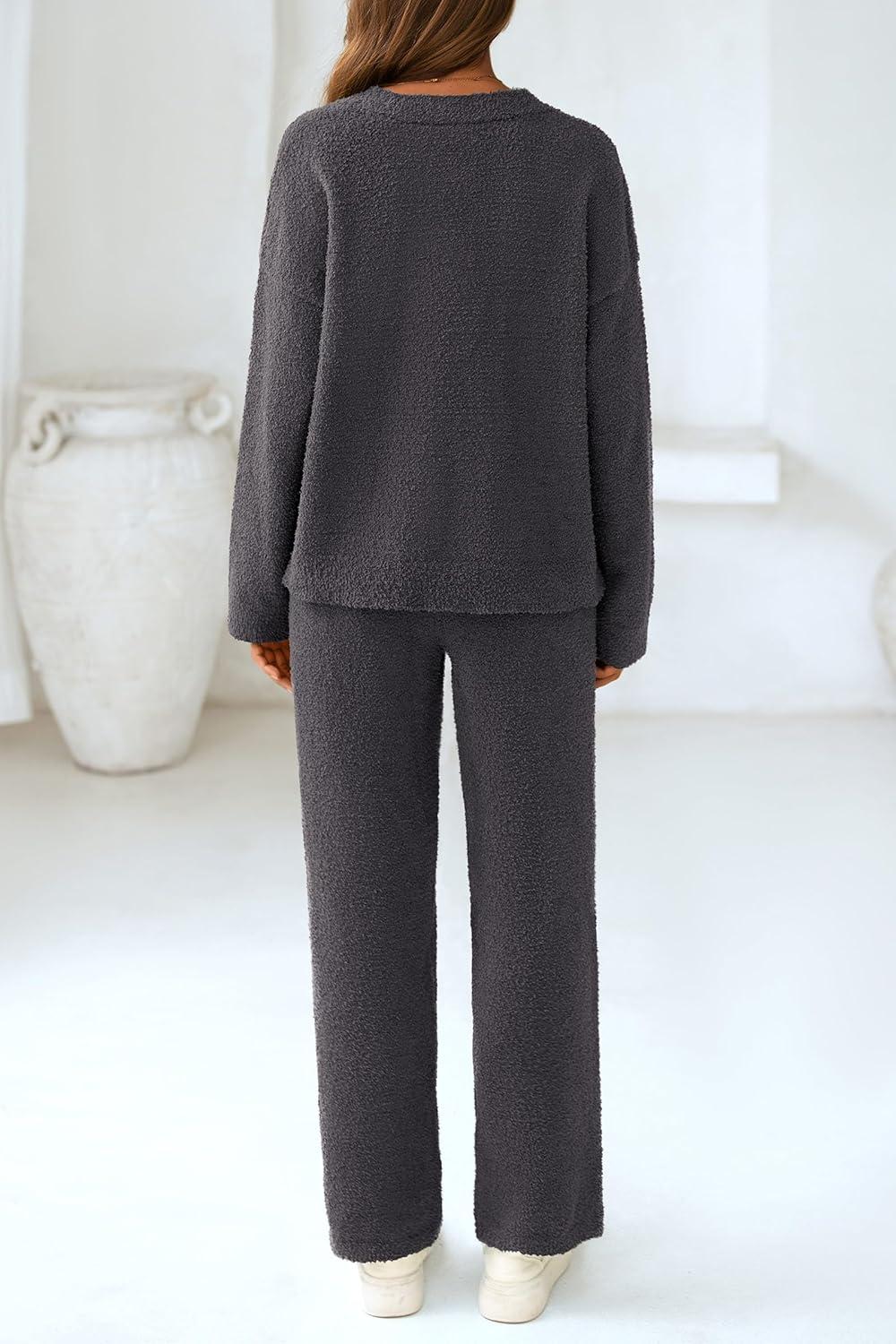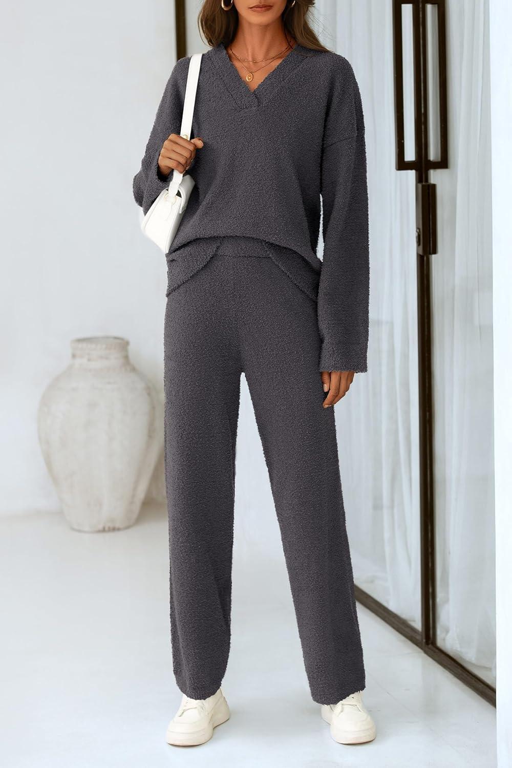PRETTYGARDEN Lounge Sets for Women Two Piece Sweaters Pajama Set Fall Fashion 2025 Loungewear Outfits Matching Winter Clothes(Dark Grey)