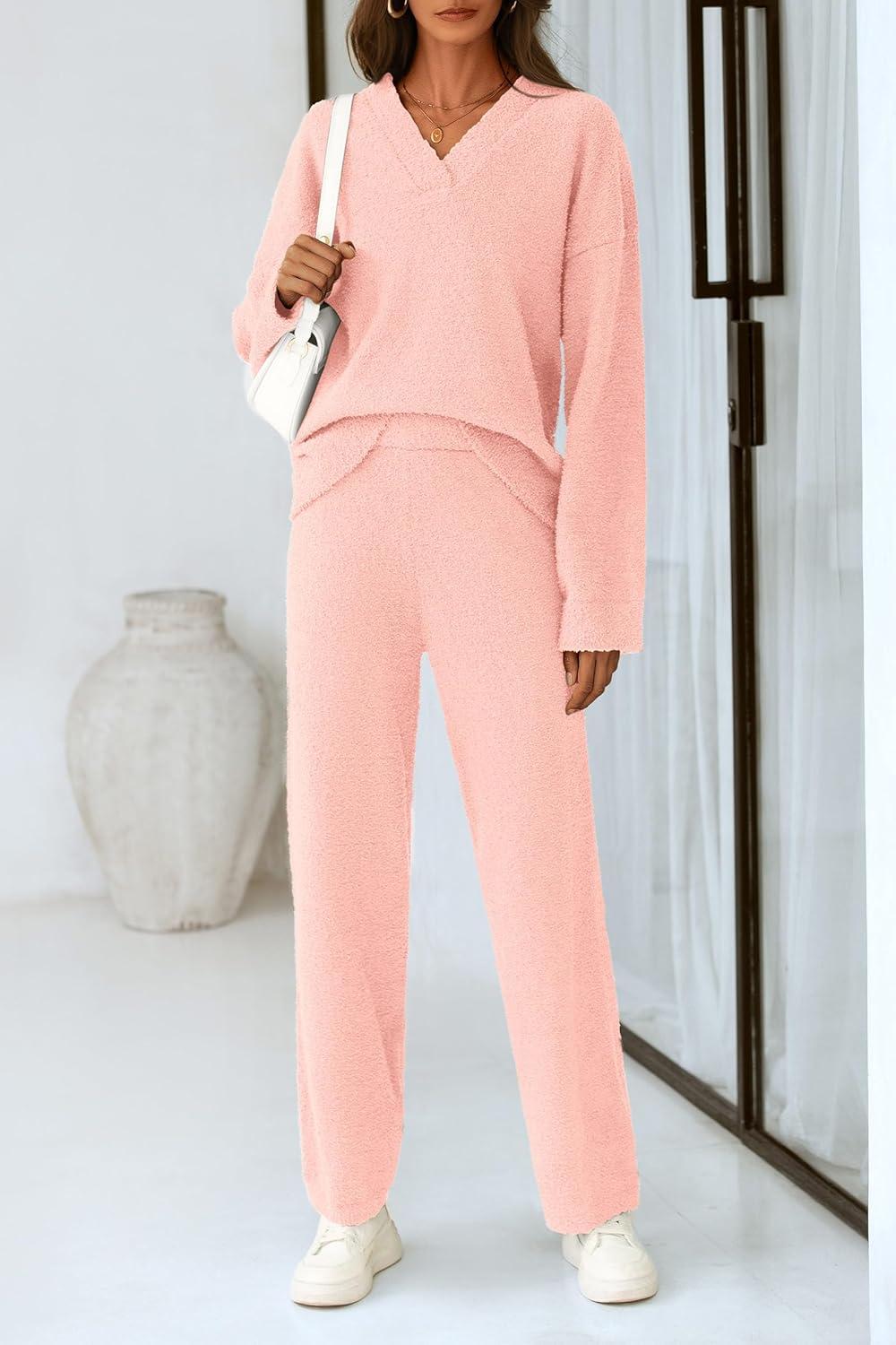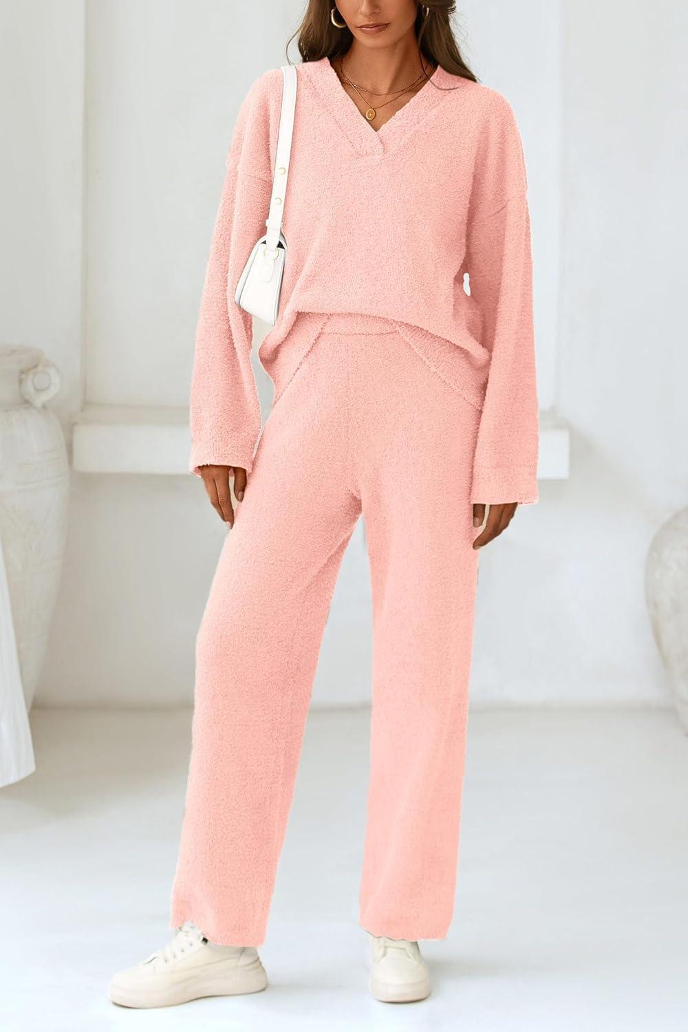 PRETTYGARDEN Lounge Sets for Women Two Piece Sweaters Pajama Set Fall Fashion 2025 Loungewear Outfits Matching Winter Clothes(Light Pink)