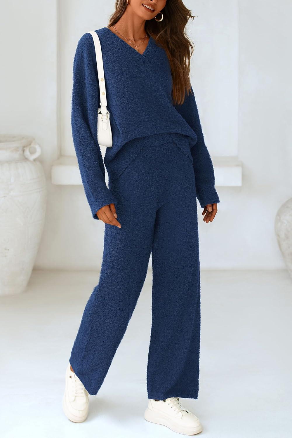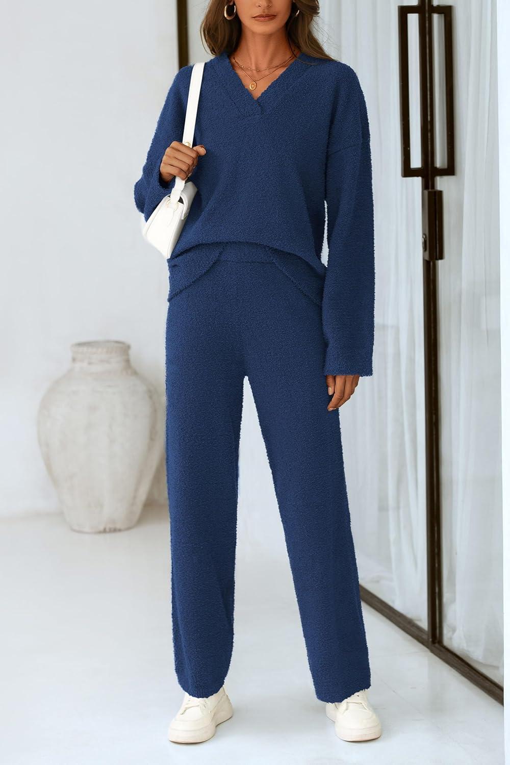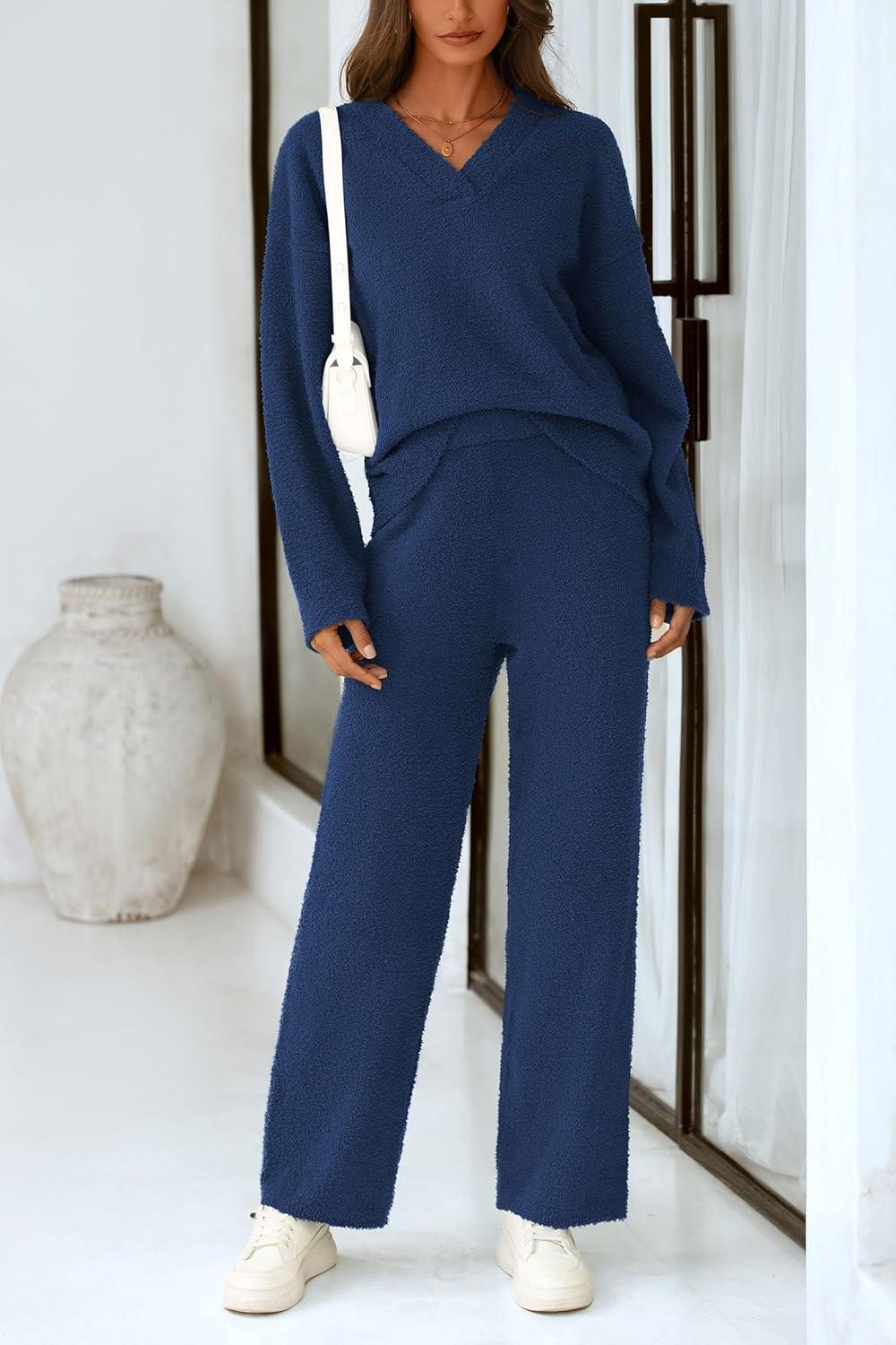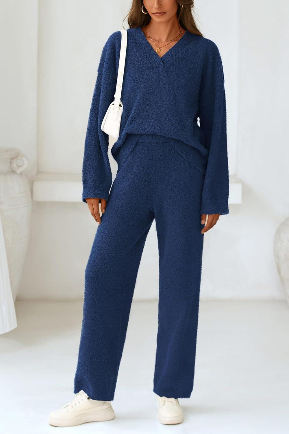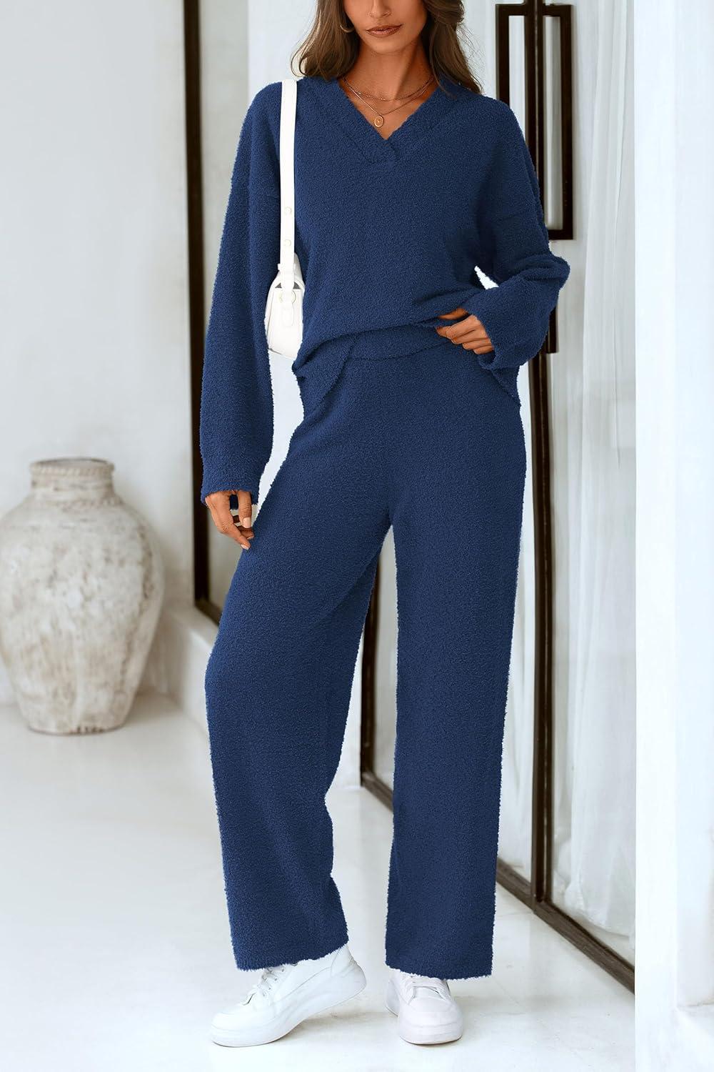 PRETTYGARDEN Lounge Sets for Women Two Piece Sweaters Pajama Set Fall Fashion 2025 Loungewear Outfits Matching Winter Clothes(Navy)