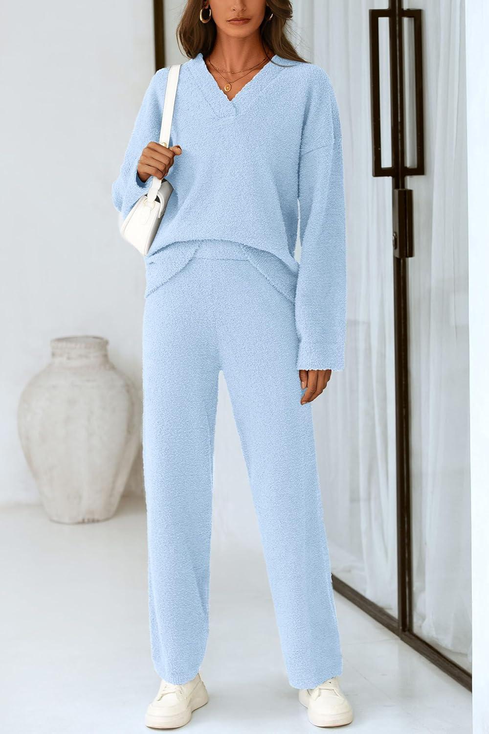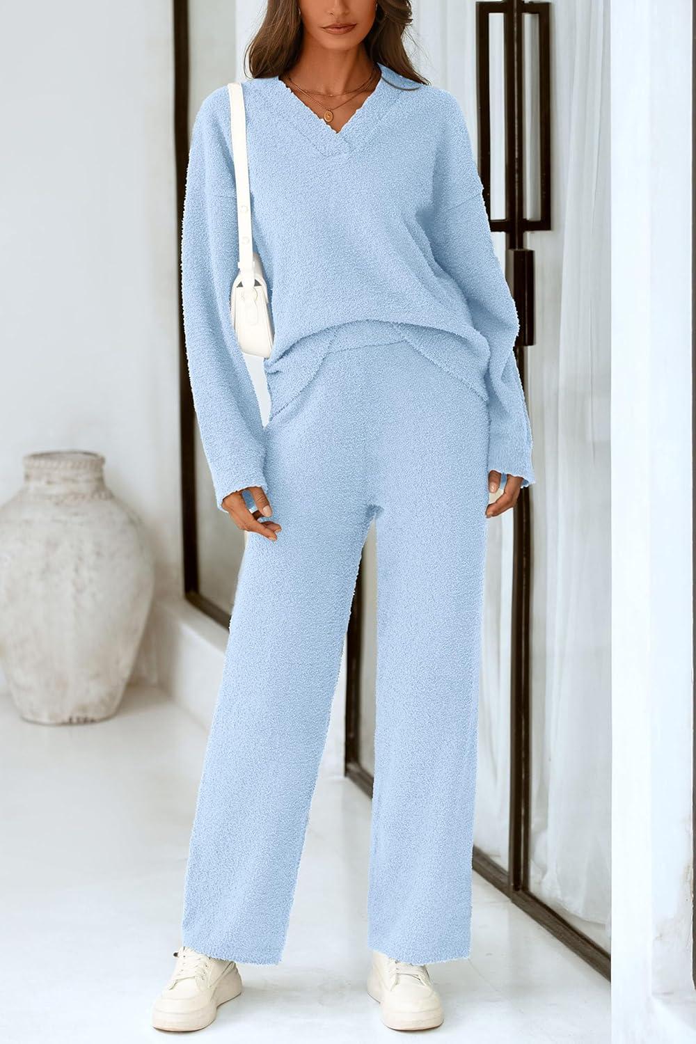 PRETTYGARDEN Lounge Sets for Women Two Piece Sweaters Pajama Set Fall Fashion 2025 Loungewear Outfits Matching Winter Clothes(Sky Blue)