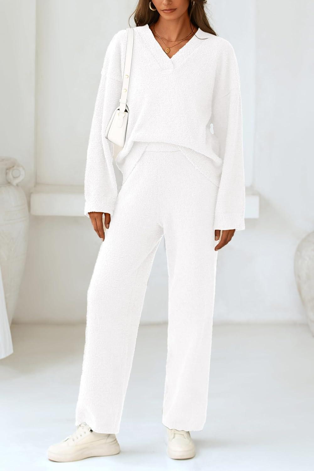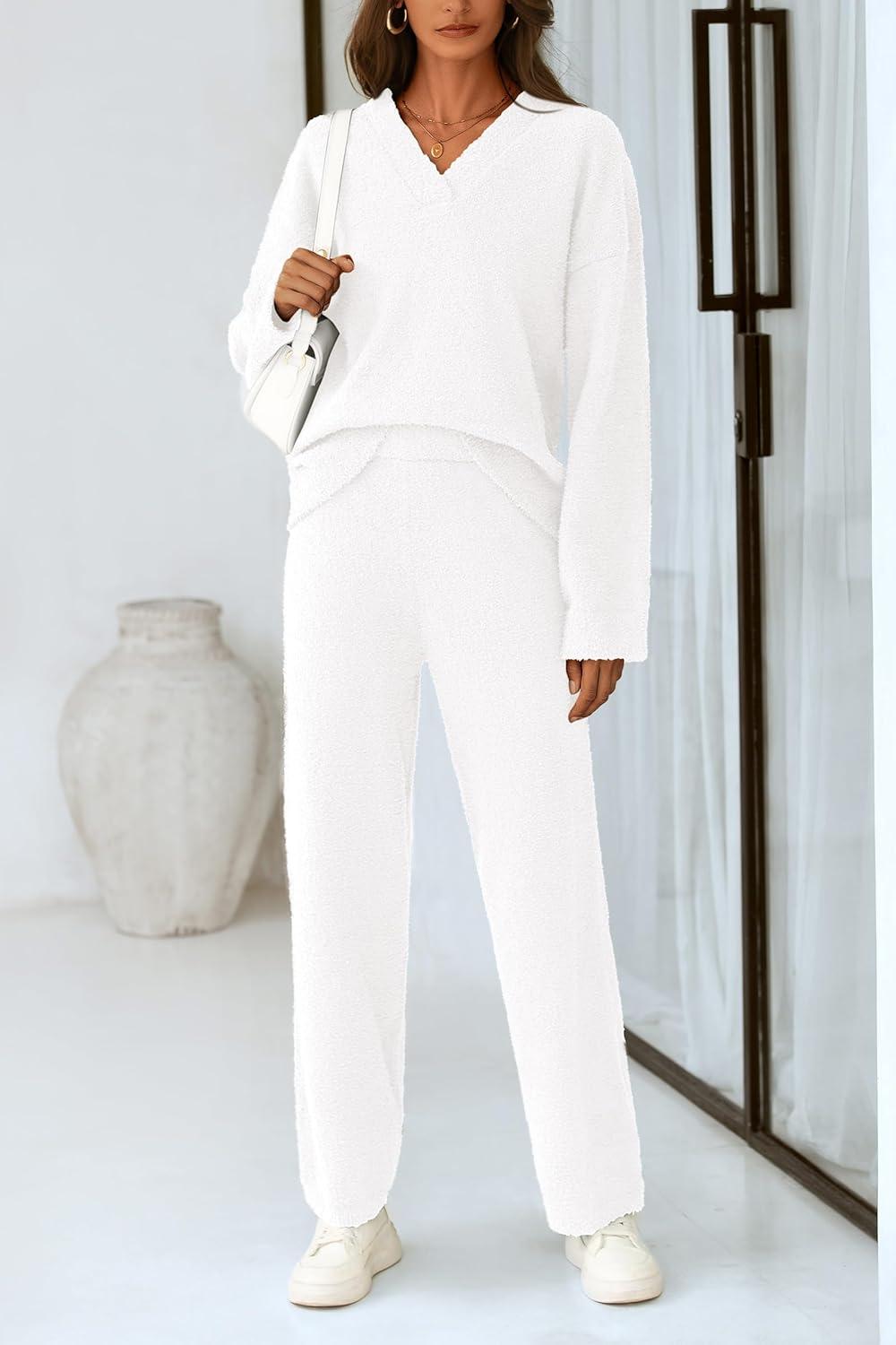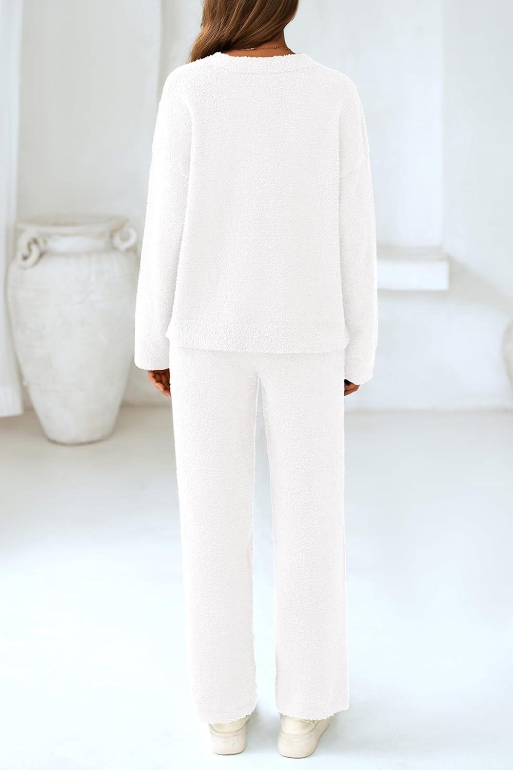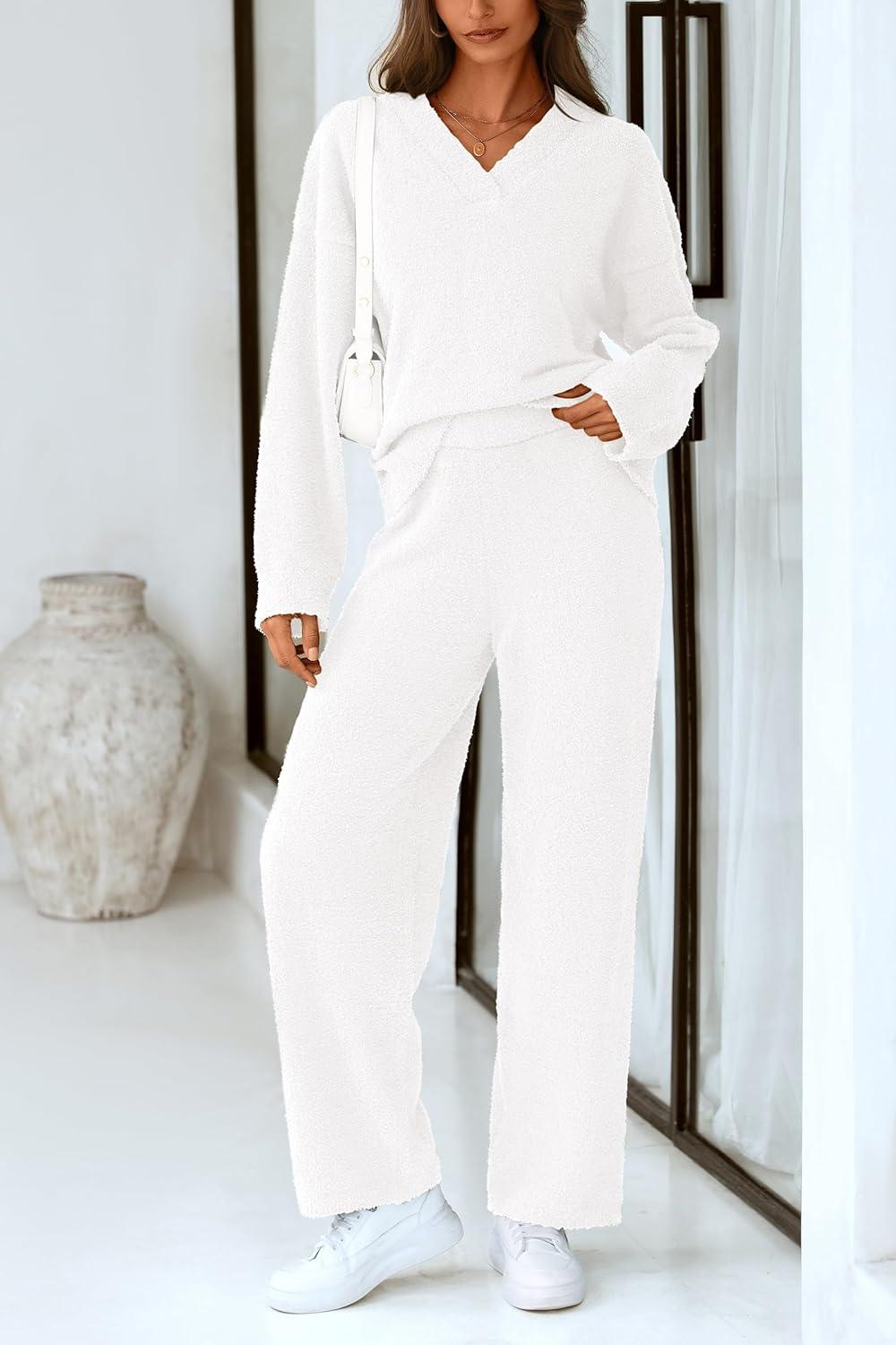 PRETTYGARDEN Lounge Sets for Women Two Piece Sweaters Pajama Set Fall Fashion 2025 Loungewear Outfits Matching Winter Clothes(White)