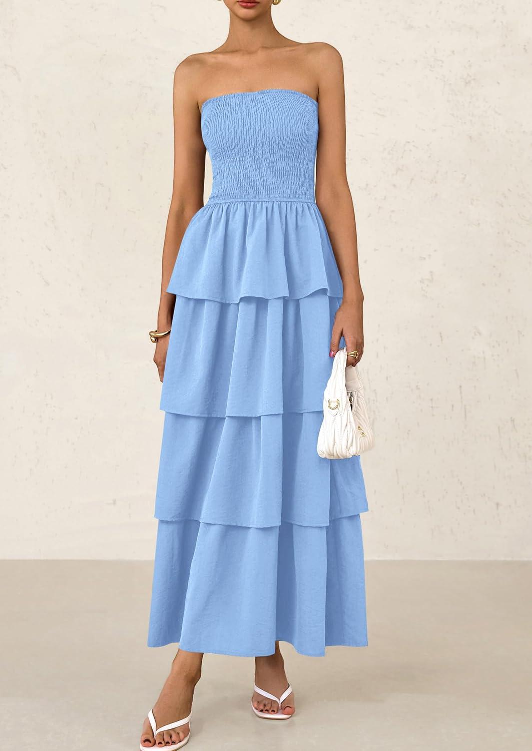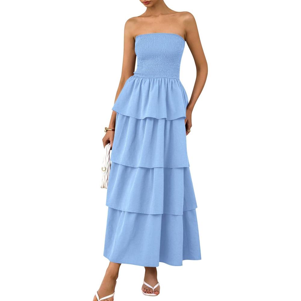 Be the first to review “PRETTYGARDEN Maxi Dresses for Women 2025 Summer Off Shoulder Smocked Tiered Ruffle Long Flowy Wedding Guest Dress(Blue)”