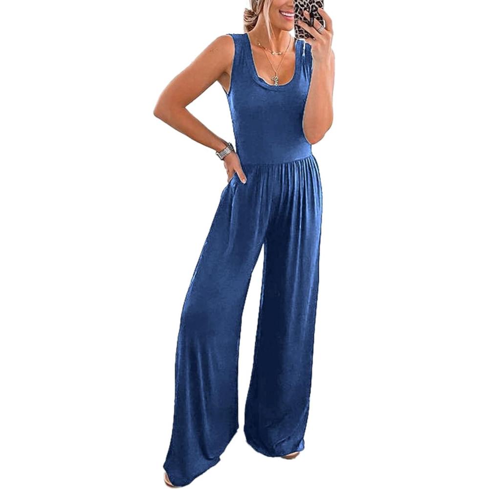 PRETTYGARDEN One Piece Jumpsuits 2025 Spring Sleeveless Tank Wide Leg Summer Casual Travel Airport Outfits Pants Rompers(Blue)