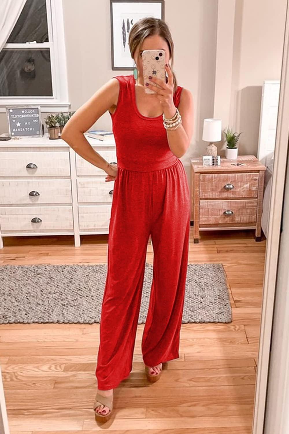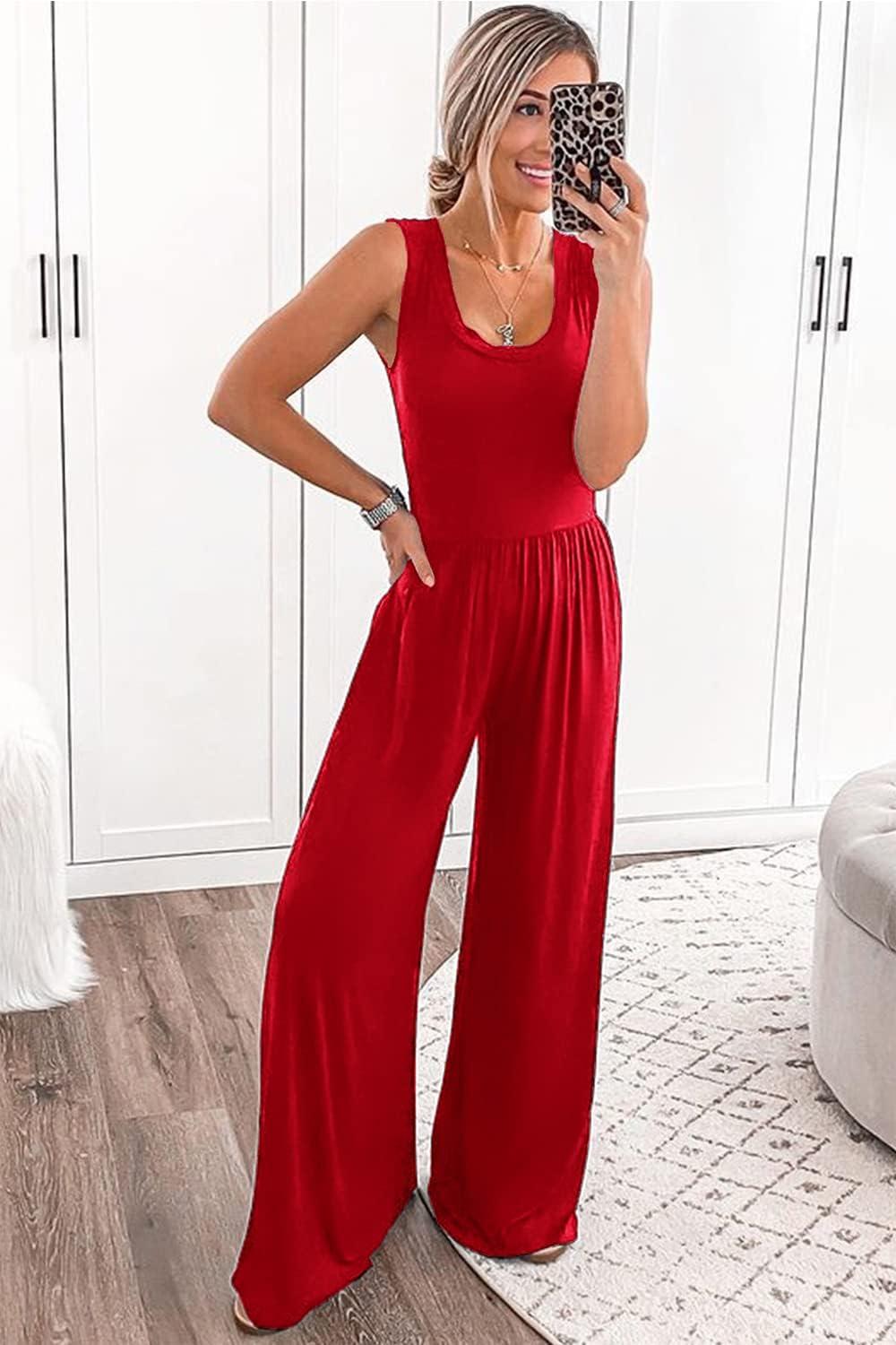 PRETTYGARDEN One Piece Jumpsuits 2025 Spring Sleeveless Tank Wide Leg Summer Casual Travel Airport Outfits Pants Rompers(Red)