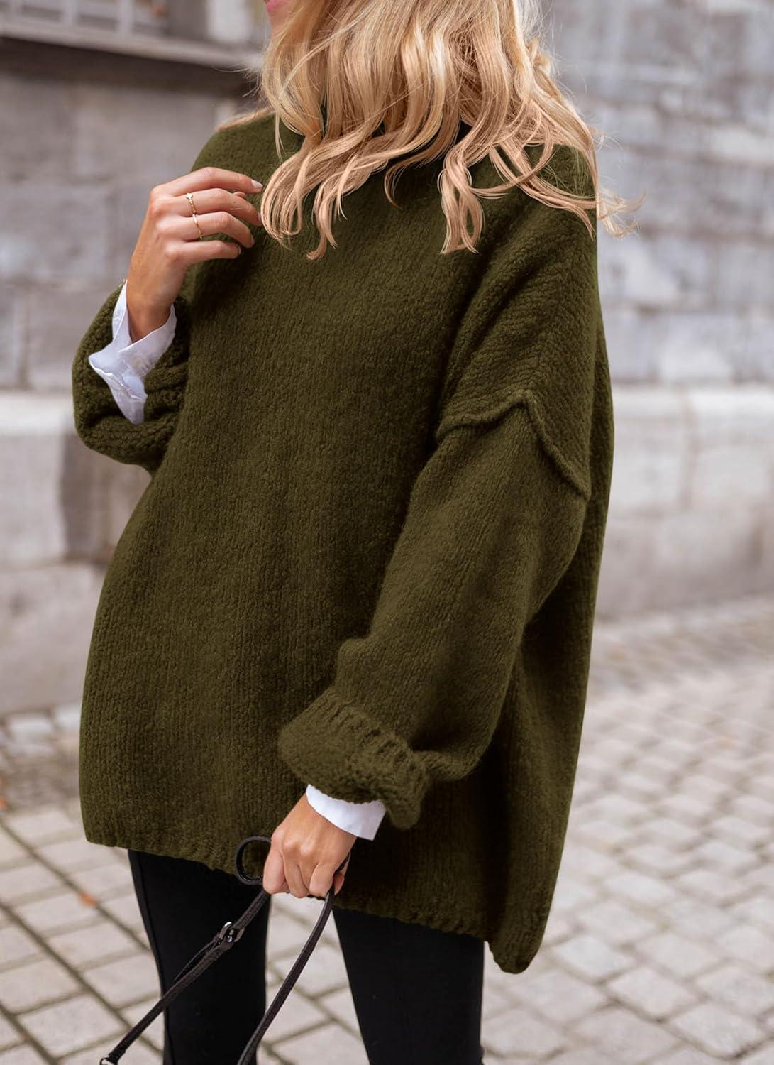 PRETTYGARDEN Oversized Sweaters for Women 2025 Chunky Turtleneck Sweater Fall Clothes Long Sleeve Tops Winter Clothing(Army Green)