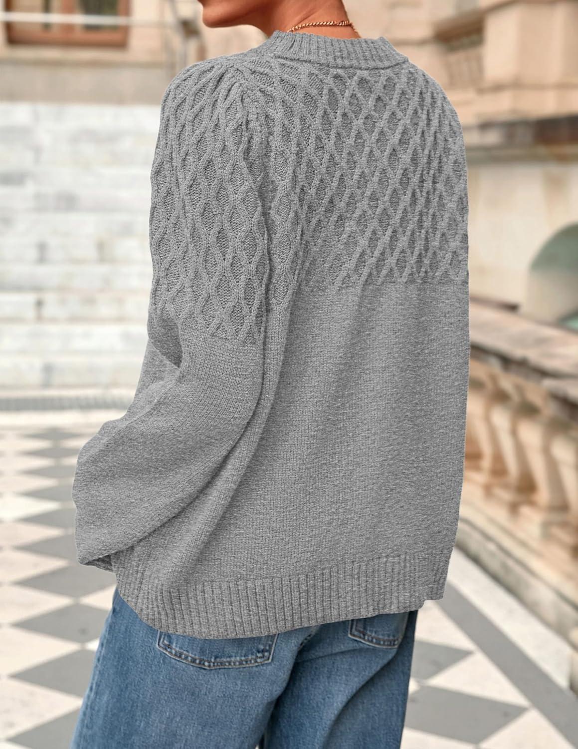 PRETTYGARDEN Oversized Sweaters for Women 2025 Fall Cute Cable Knit Long Sleeve Crewneck Chunky Pullover Tops Winter Clothing(Grey)
