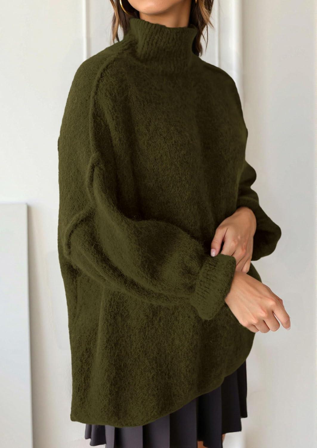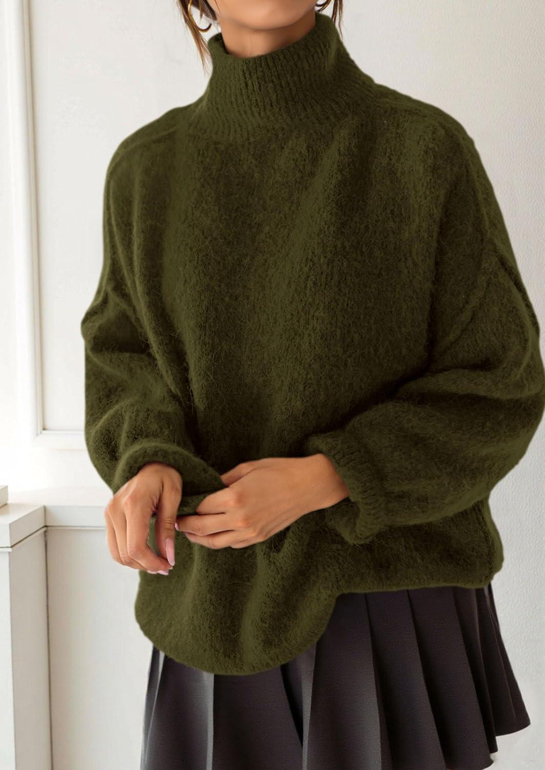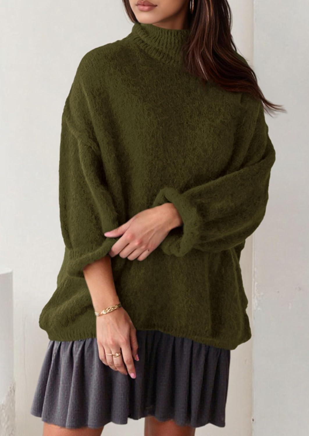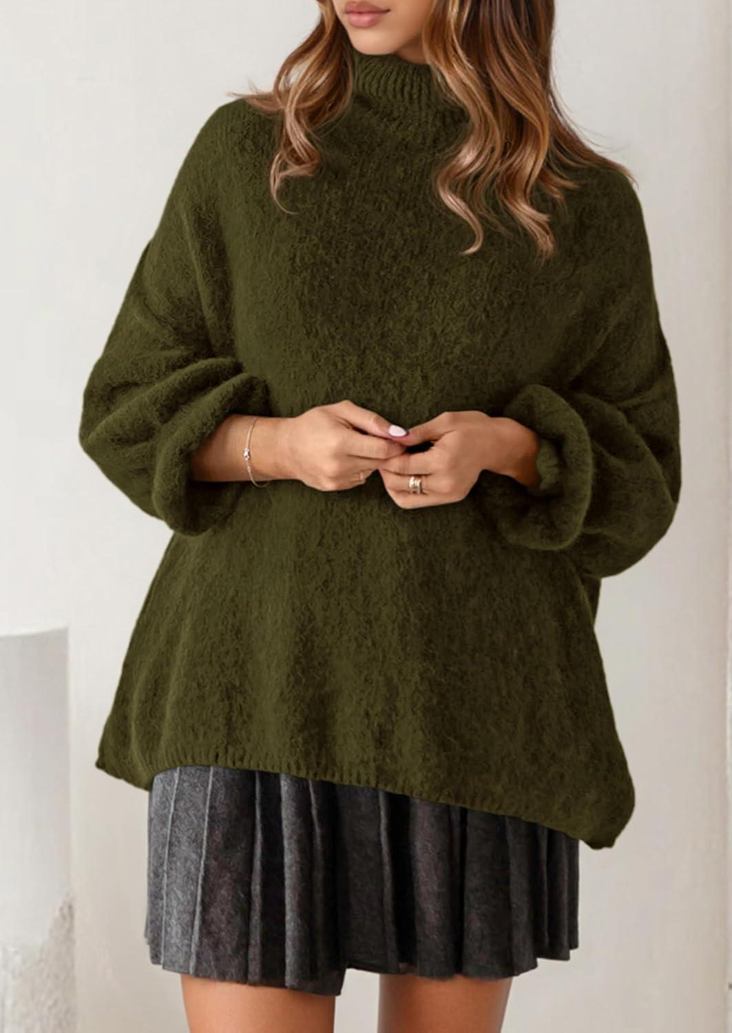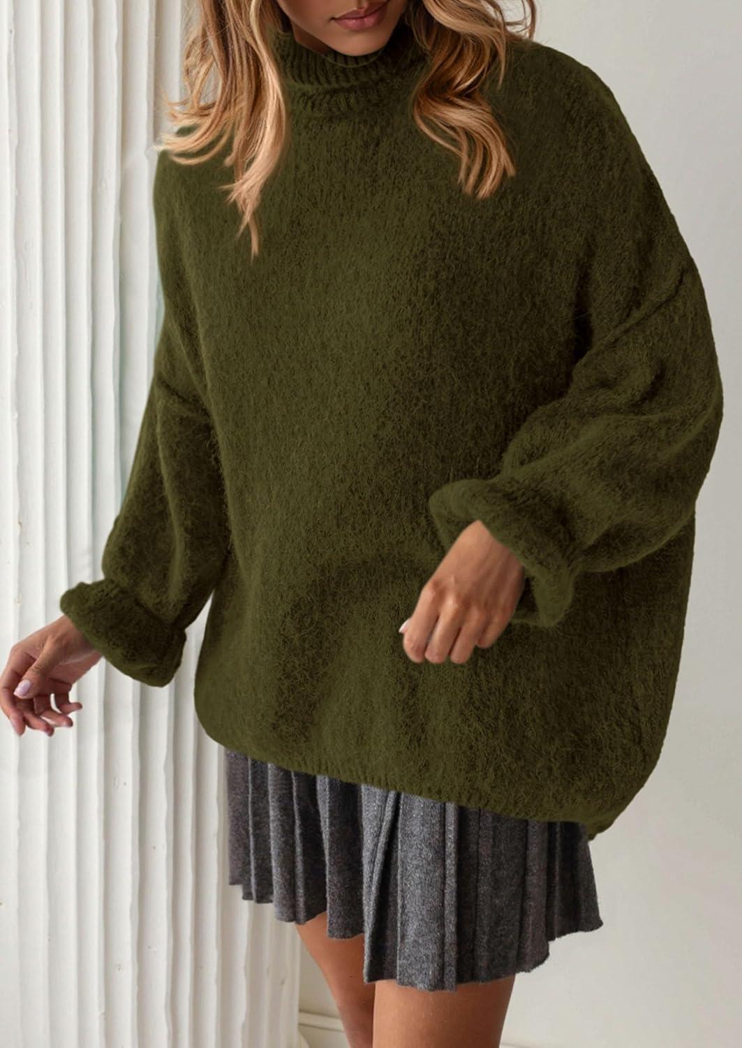 PRETTYGARDEN Oversized Sweaters for Women Fall Clothes 2025 Long Sleeve Mock Neck Tops Chunky Knit Pullover Winter Clothing(Army Green)