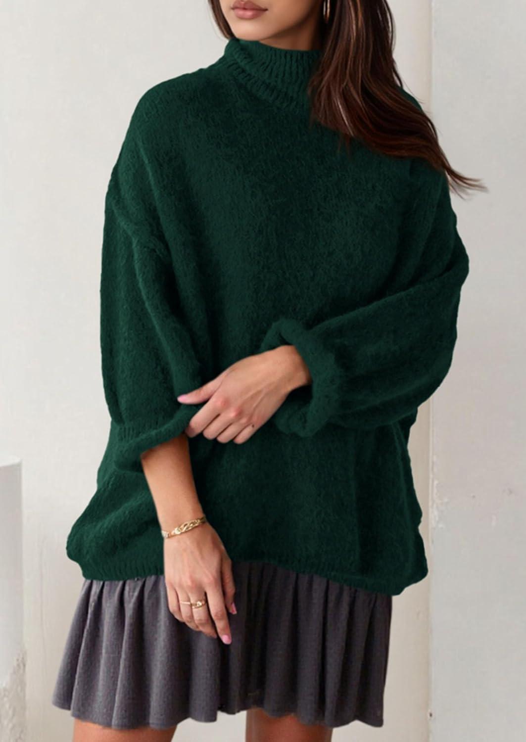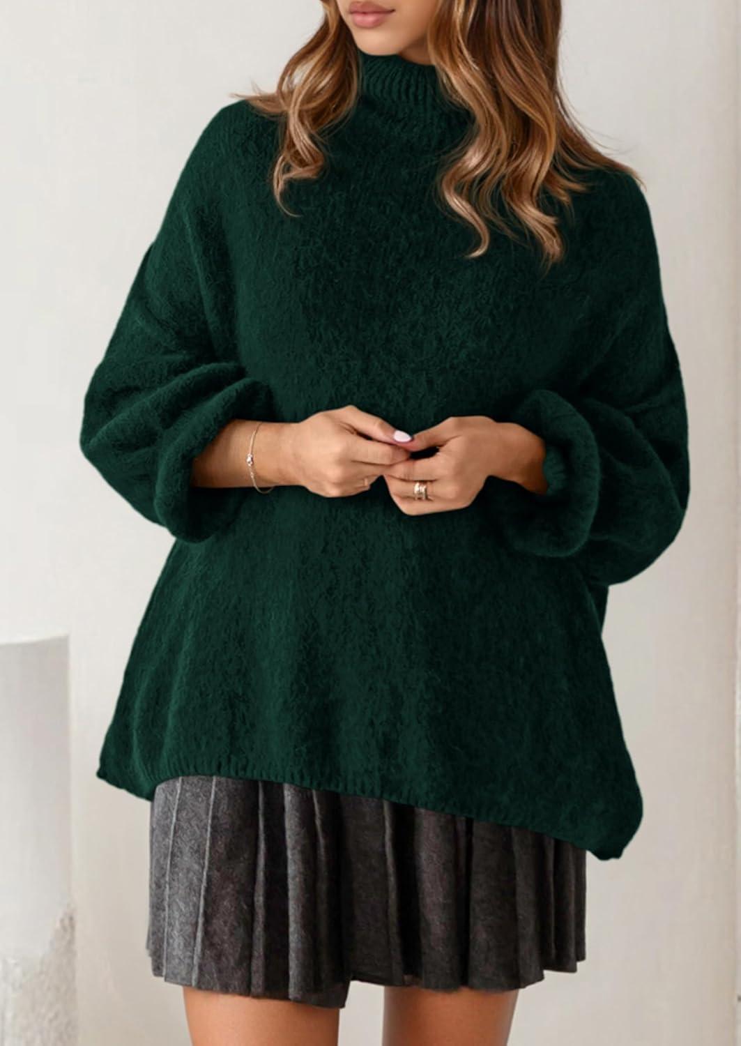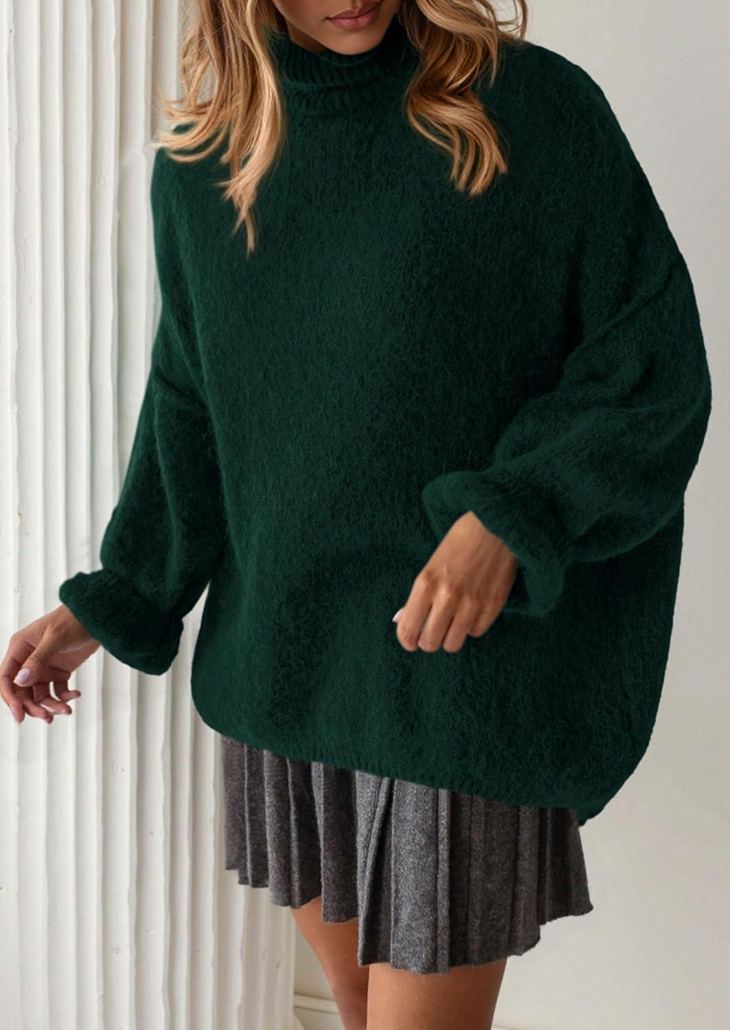 PRETTYGARDEN Oversized Sweaters for Women Fall Clothes 2025 Long Sleeve Mock Neck Tops Chunky Knit Pullover Winter Clothing(Dark Green)