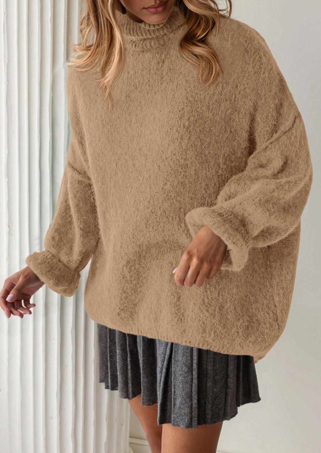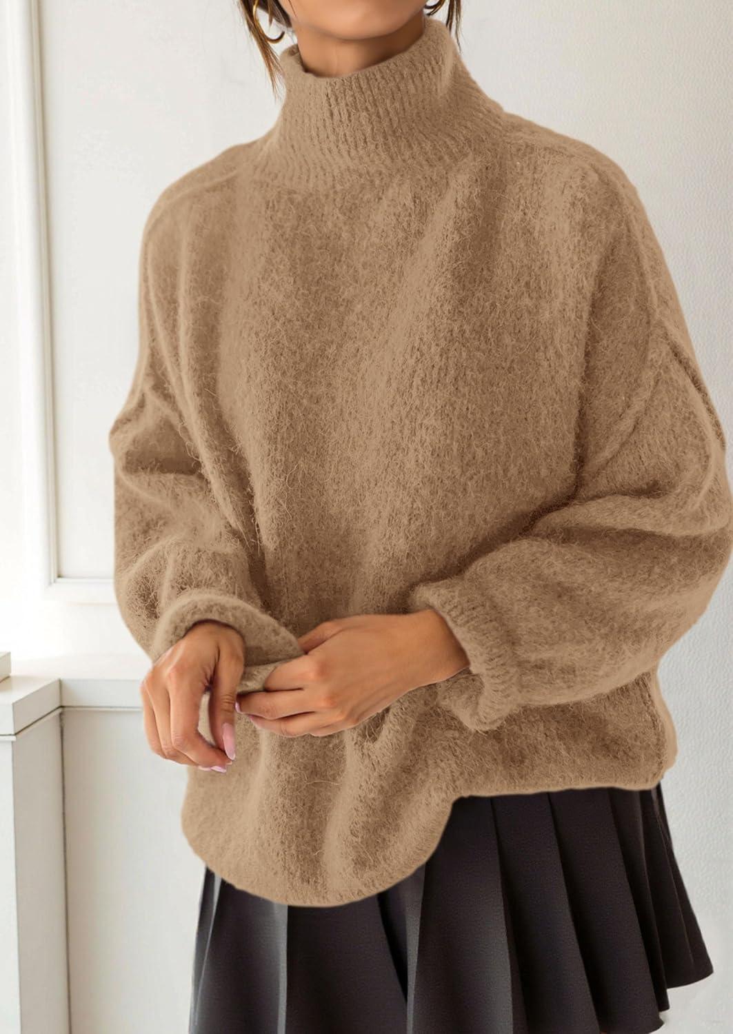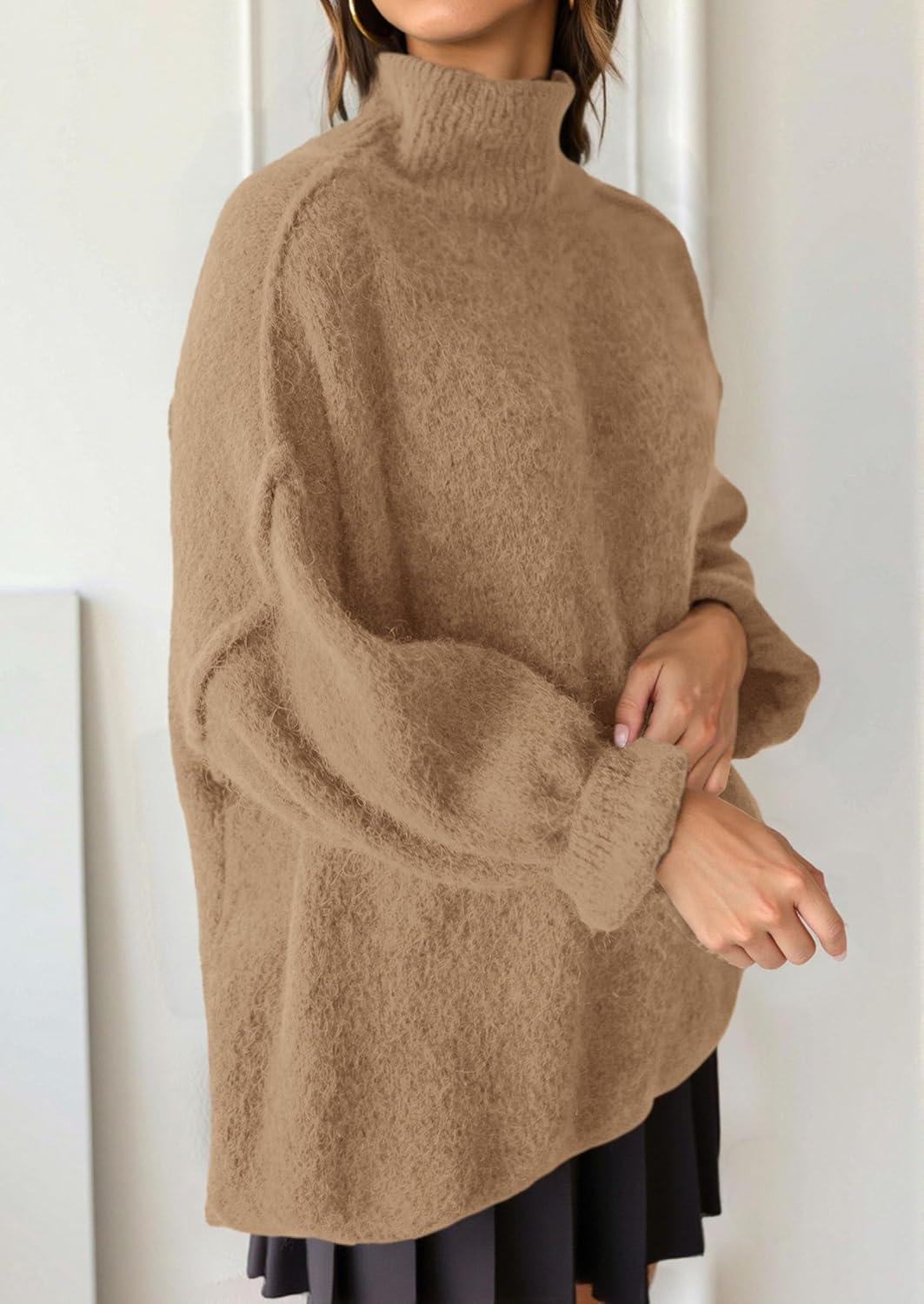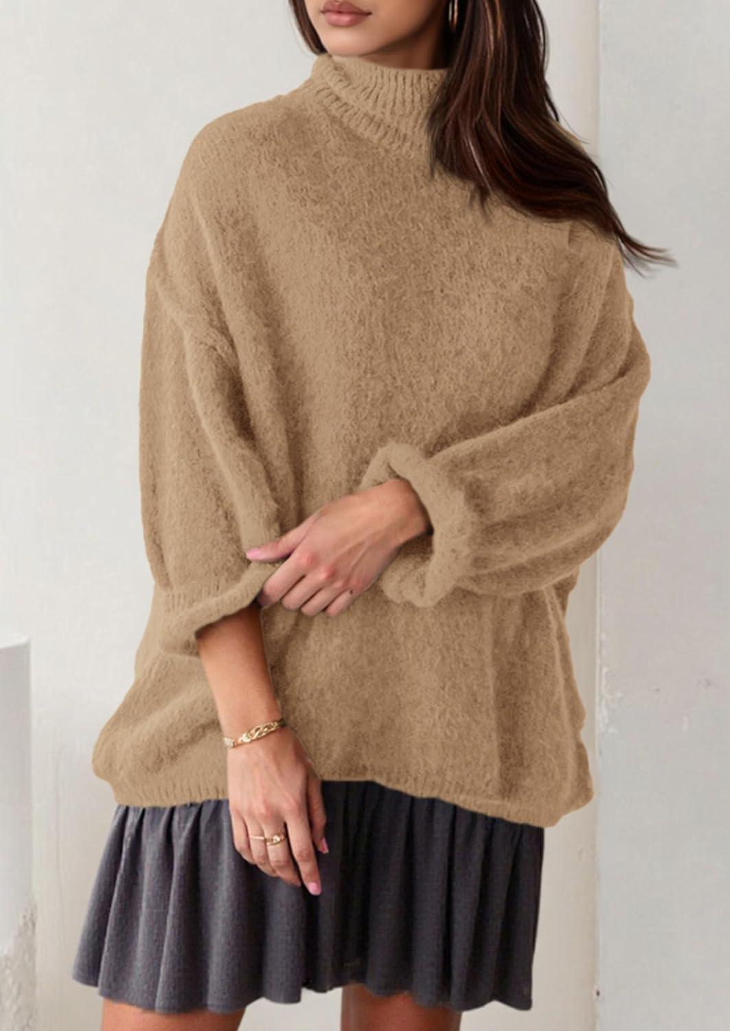 PRETTYGARDEN Oversized Sweaters for Women Fall Clothes 2025 Long Sleeve Mock Neck Tops Chunky Knit Pullover Winter Clothing(Khaki)