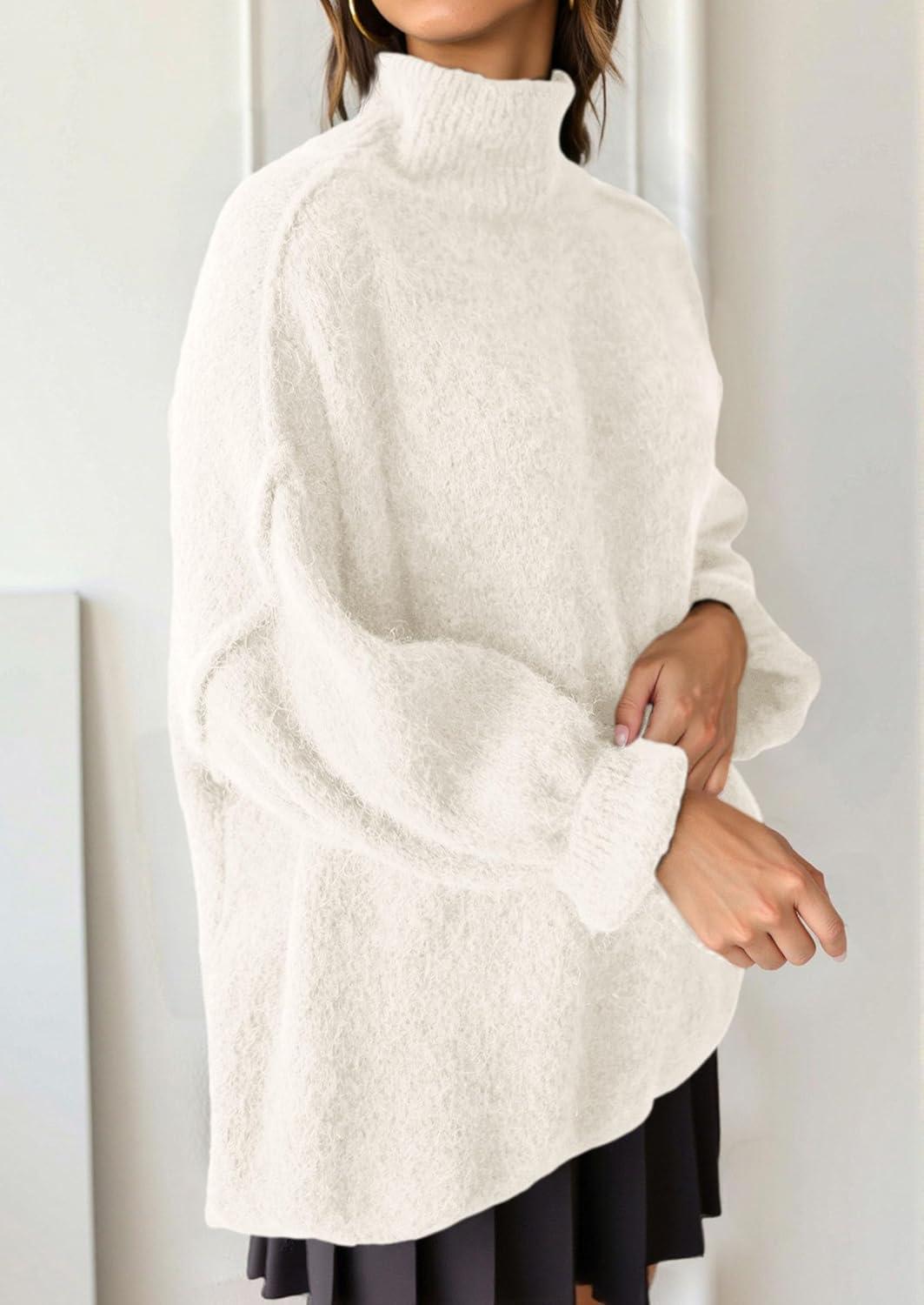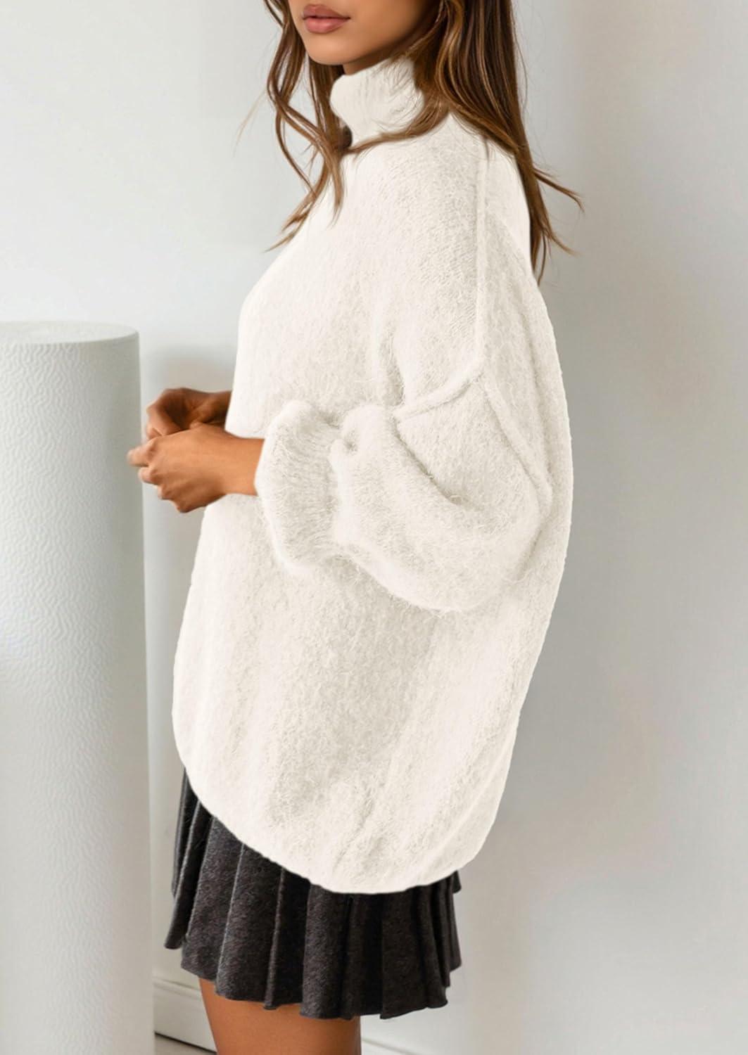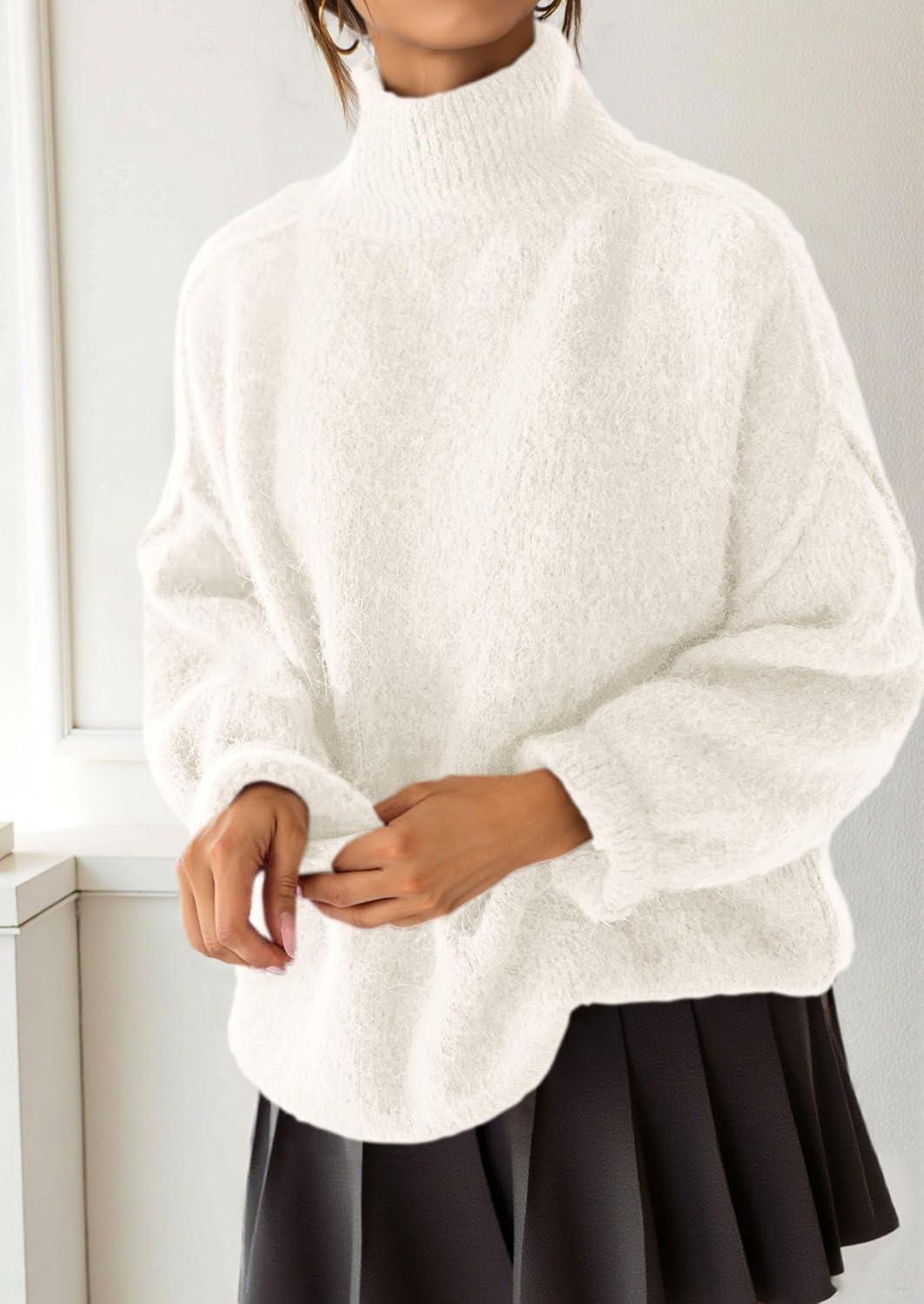 PRETTYGARDEN Oversized Sweaters for Women Fall Clothes 2025 Long Sleeve Mock Neck Tops Chunky Knit Pullover Winter Clothing(White)