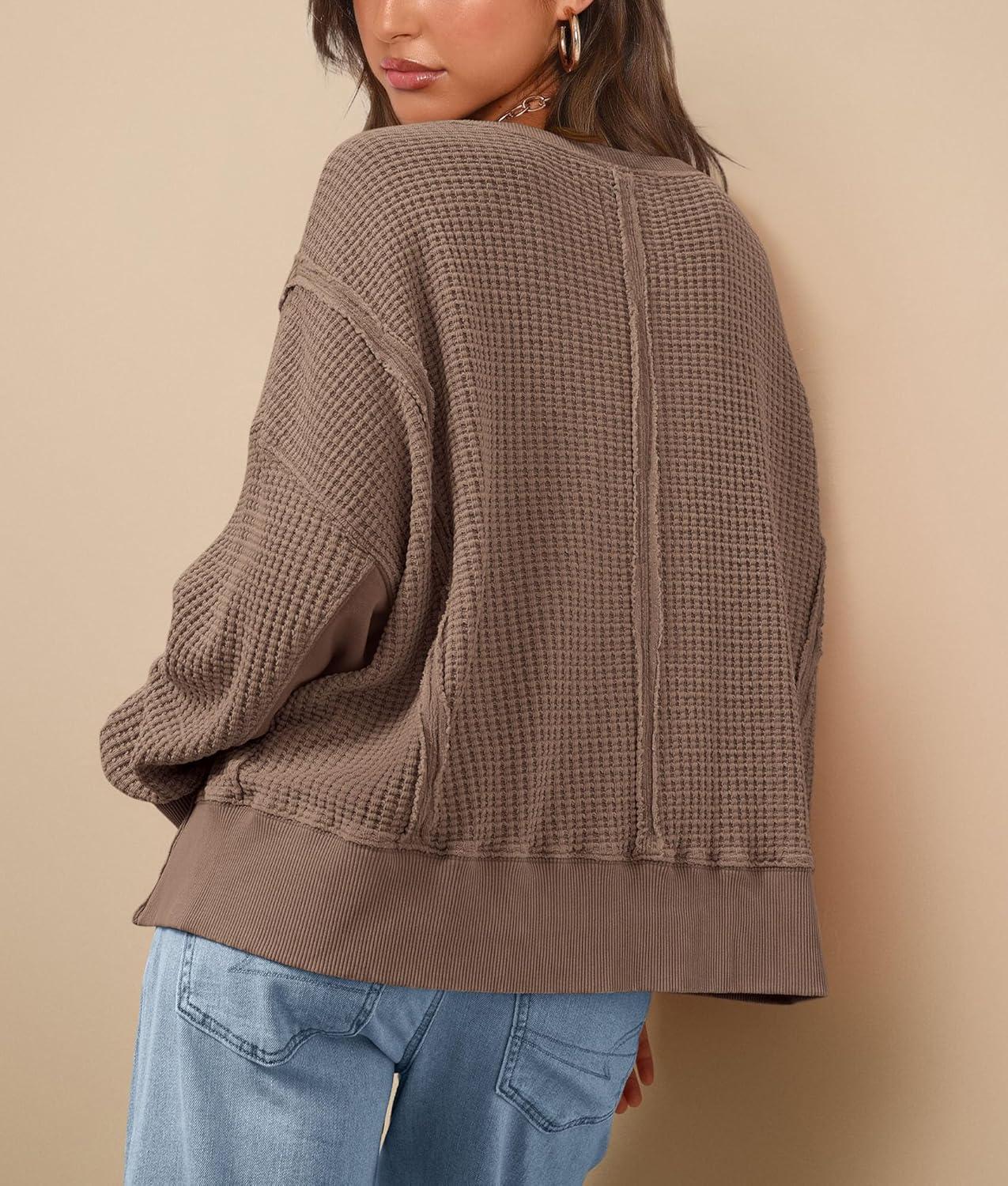 imagePRETTYGARDEN Oversized Sweatshirt for Women 2025 Fashion Crewneck Long Sleeve Pullover Waffle Knit Tops Fall Trendy ClothesBrown