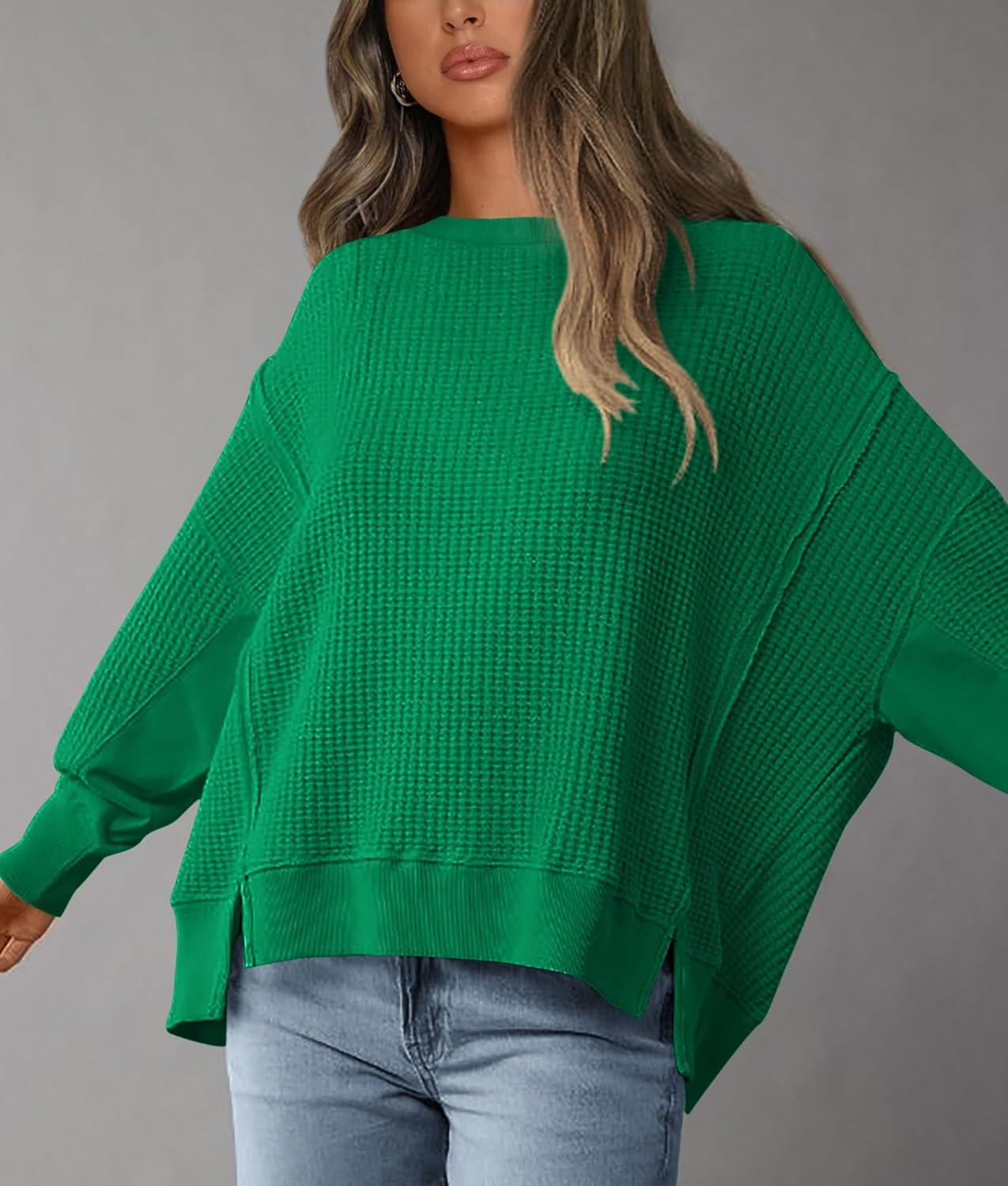 PRETTYGARDEN Oversized Sweatshirt for Women 2025 Fashion Crewneck Long Sleeve Pullover Waffle Knit Tops Fall Trendy Clothes(Green)
