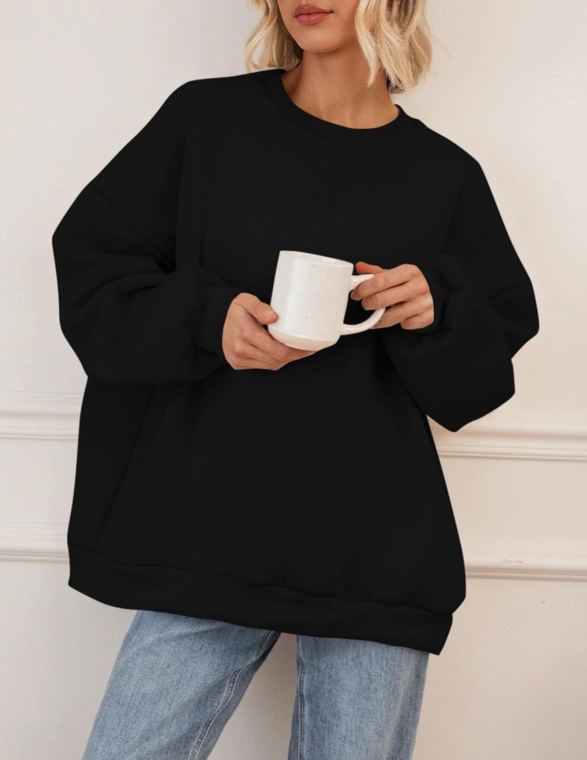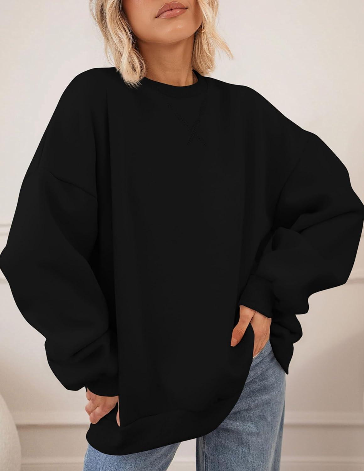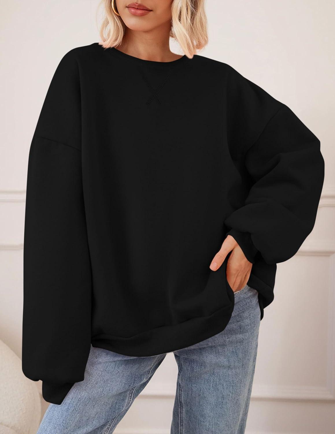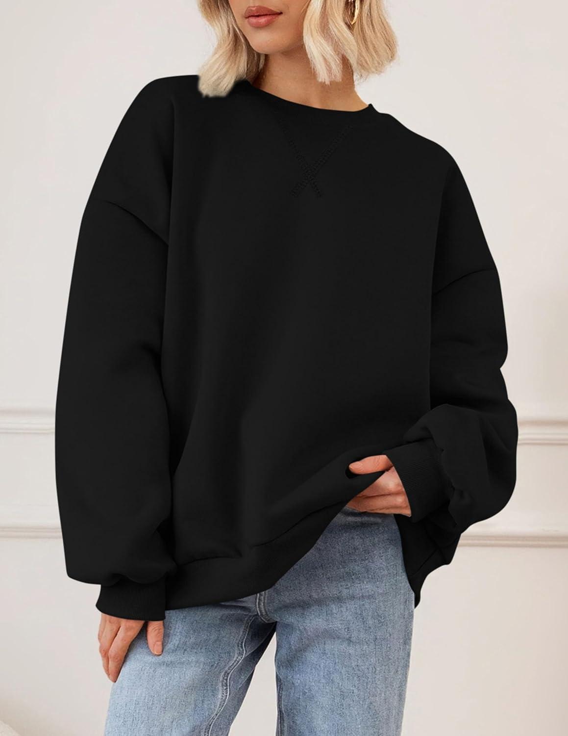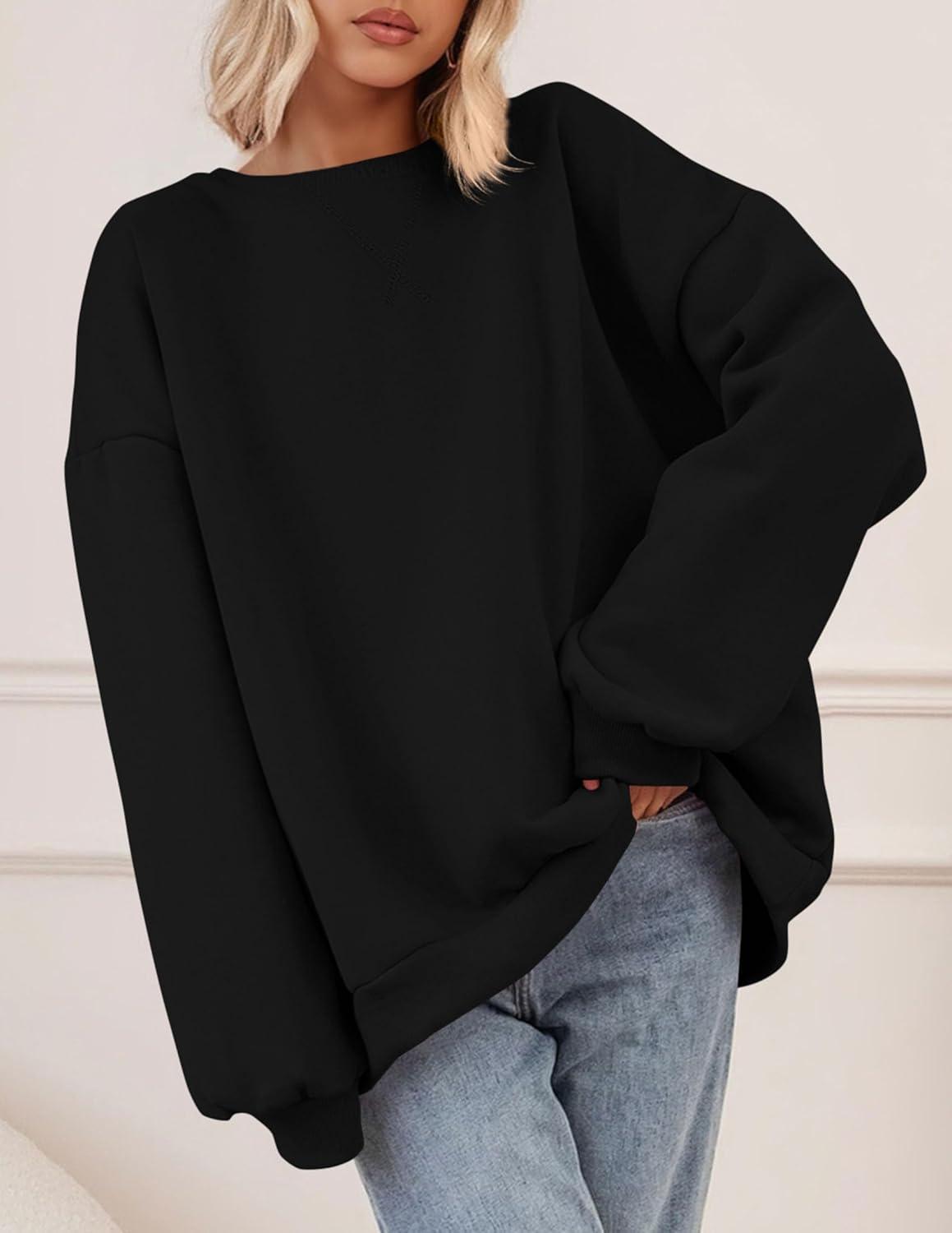 PRETTYGARDEN Oversized Sweatshirt for Women Fall Outfits 2025 Crewneck Long Sleeve Tops Fleece Pullover Winter Clothing(Black)
