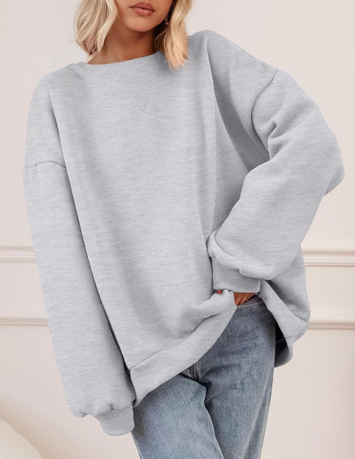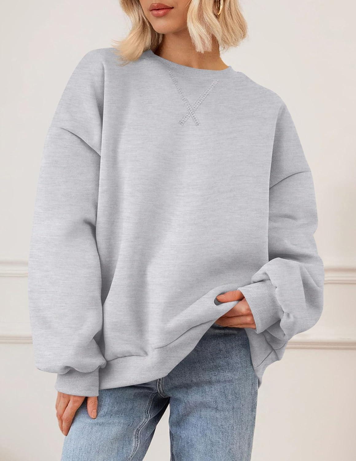 PRETTYGARDEN Oversized Sweatshirt for Women Fall Outfits 2025 Crewneck Long Sleeve Tops Fleece Pullover Winter Clothing(Grey)