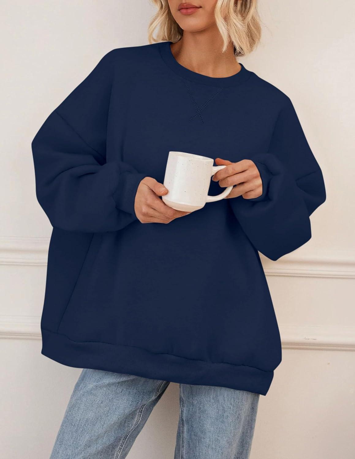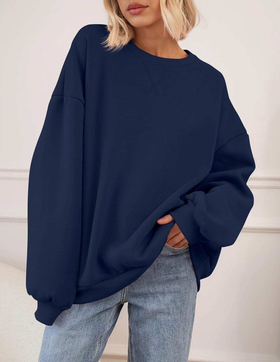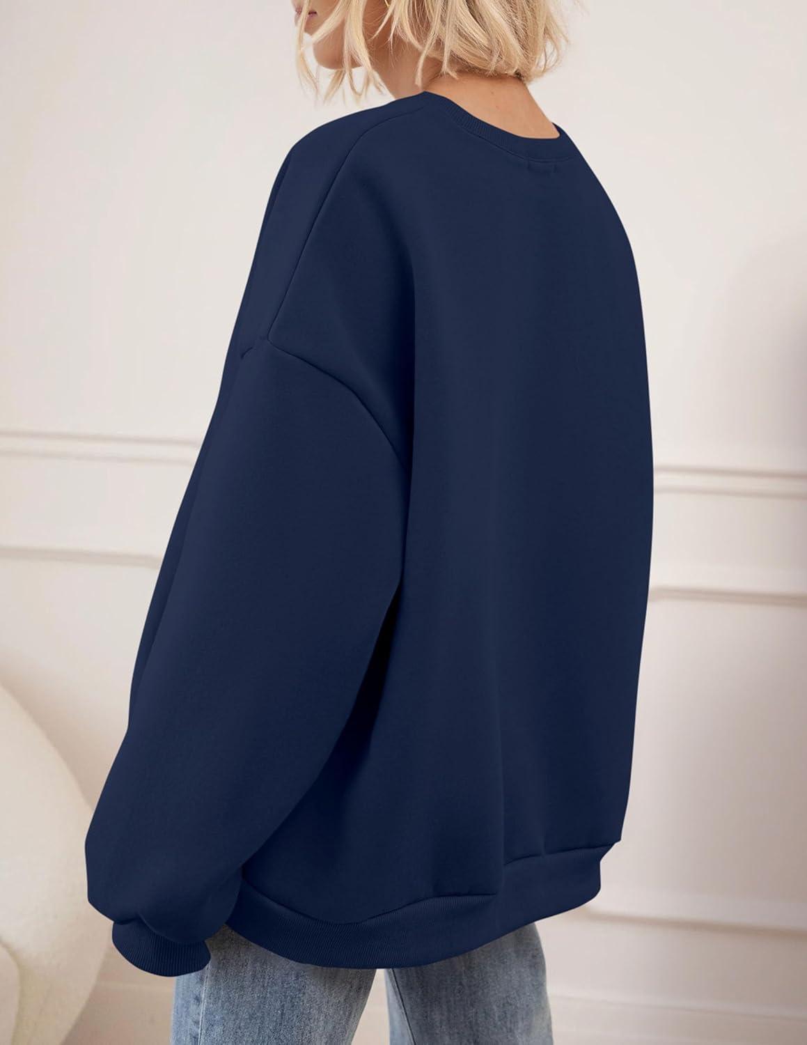 PRETTYGARDEN Oversized Sweatshirt for Women Fall Outfits 2025 Crewneck Long Sleeve Tops Fleece Pullover Winter Clothing(Navy Blue)