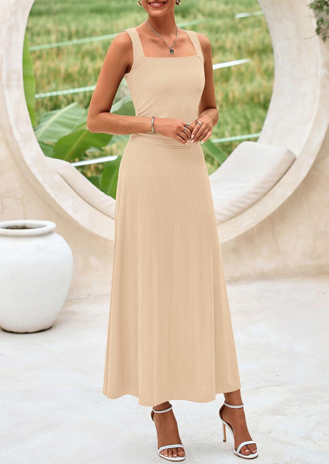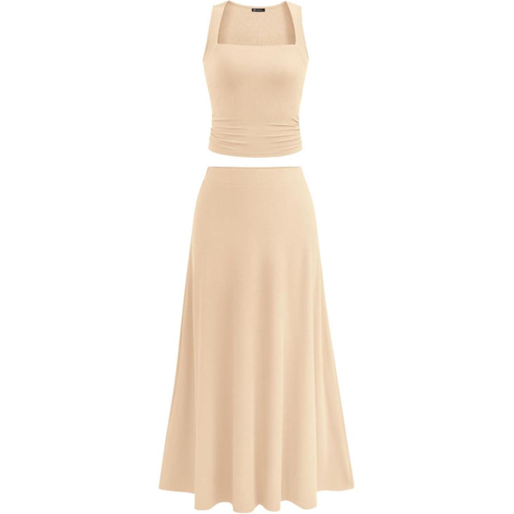 PRETTYGARDEN Skirt Sets Women 2 Piece Outfits 2025 Summer Casual Knit Tank Tops Flowy Midi Skirts Matching Vacation Clothes(Beige)