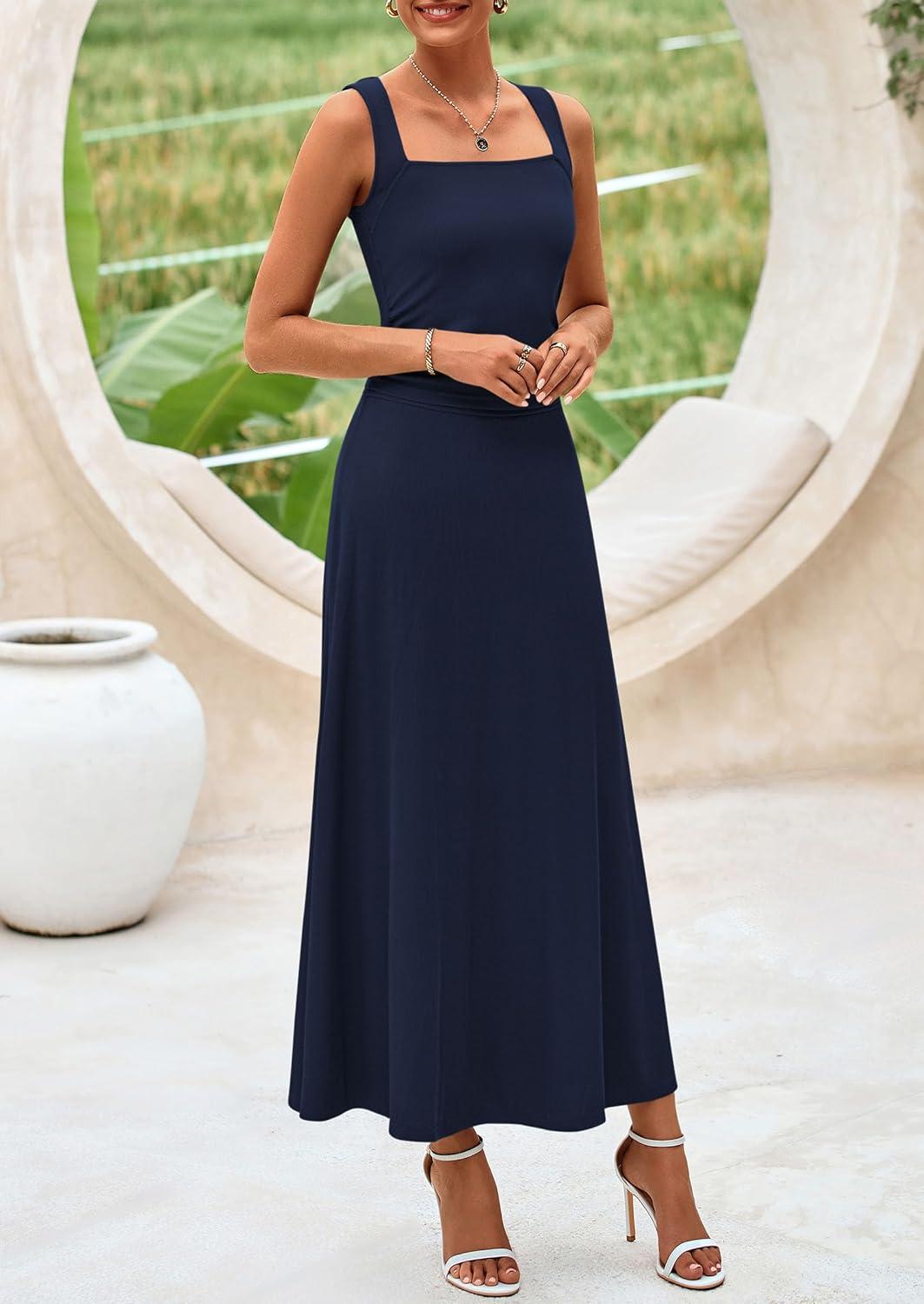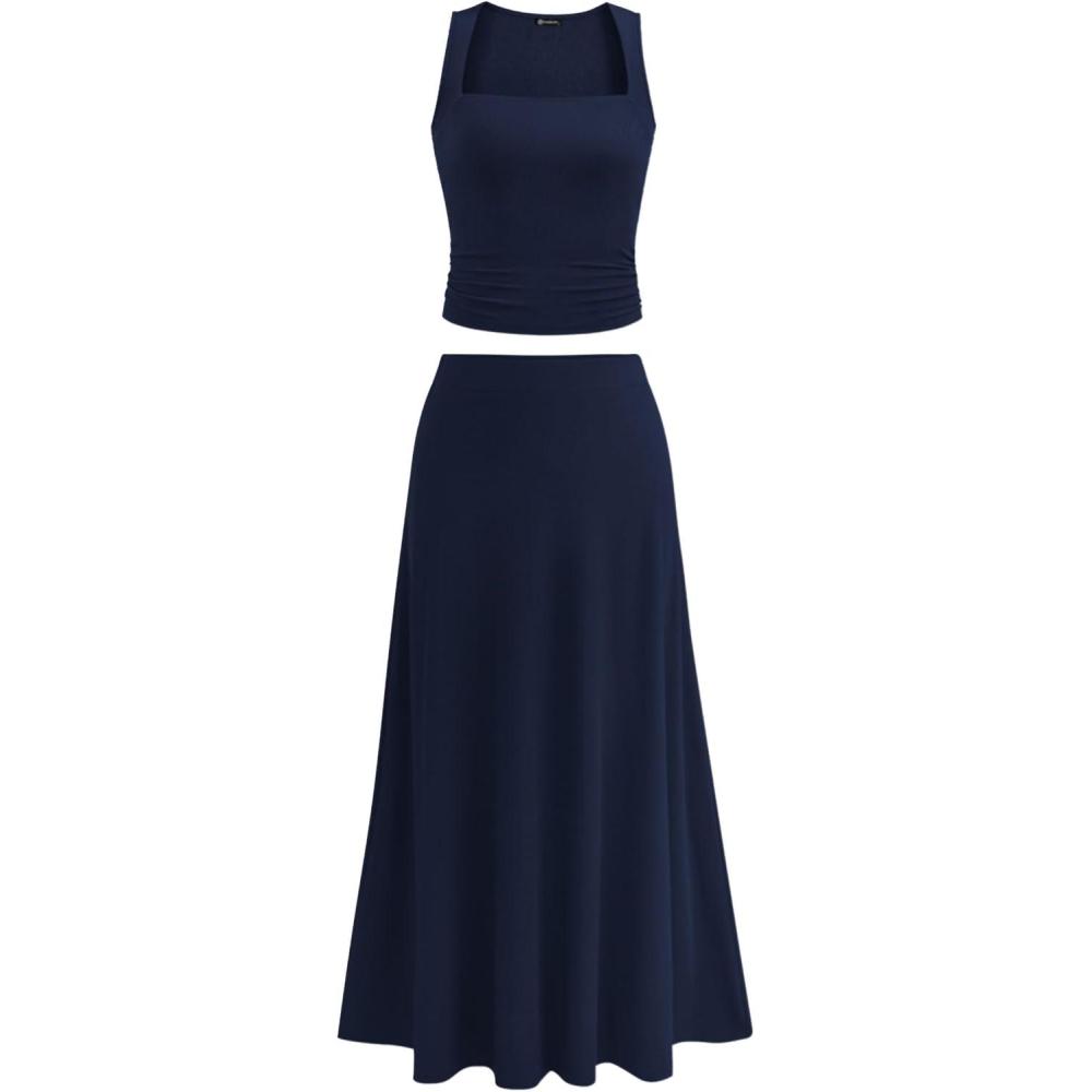 PRETTYGARDEN Skirt Sets Women 2 Piece Outfits 2025 Summer Casual Knit Tank Tops Flowy Midi Skirts Matching Vacation Clothes(Navy)