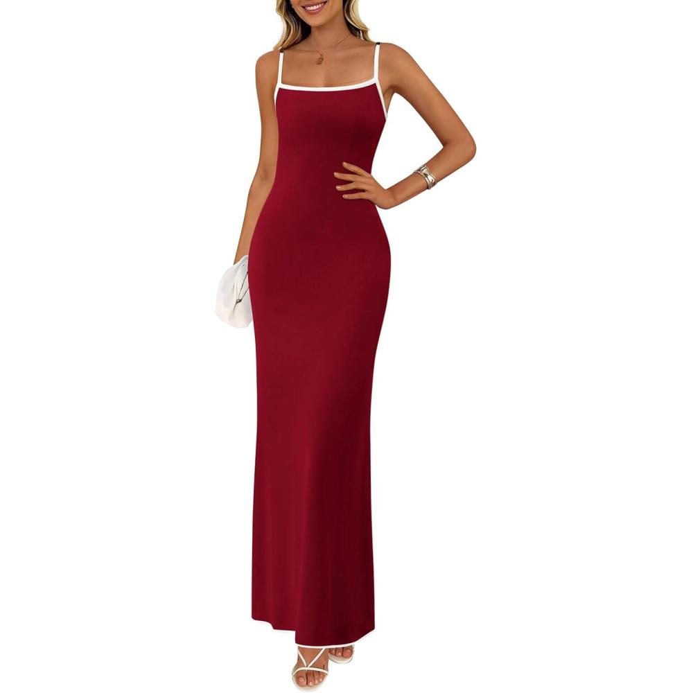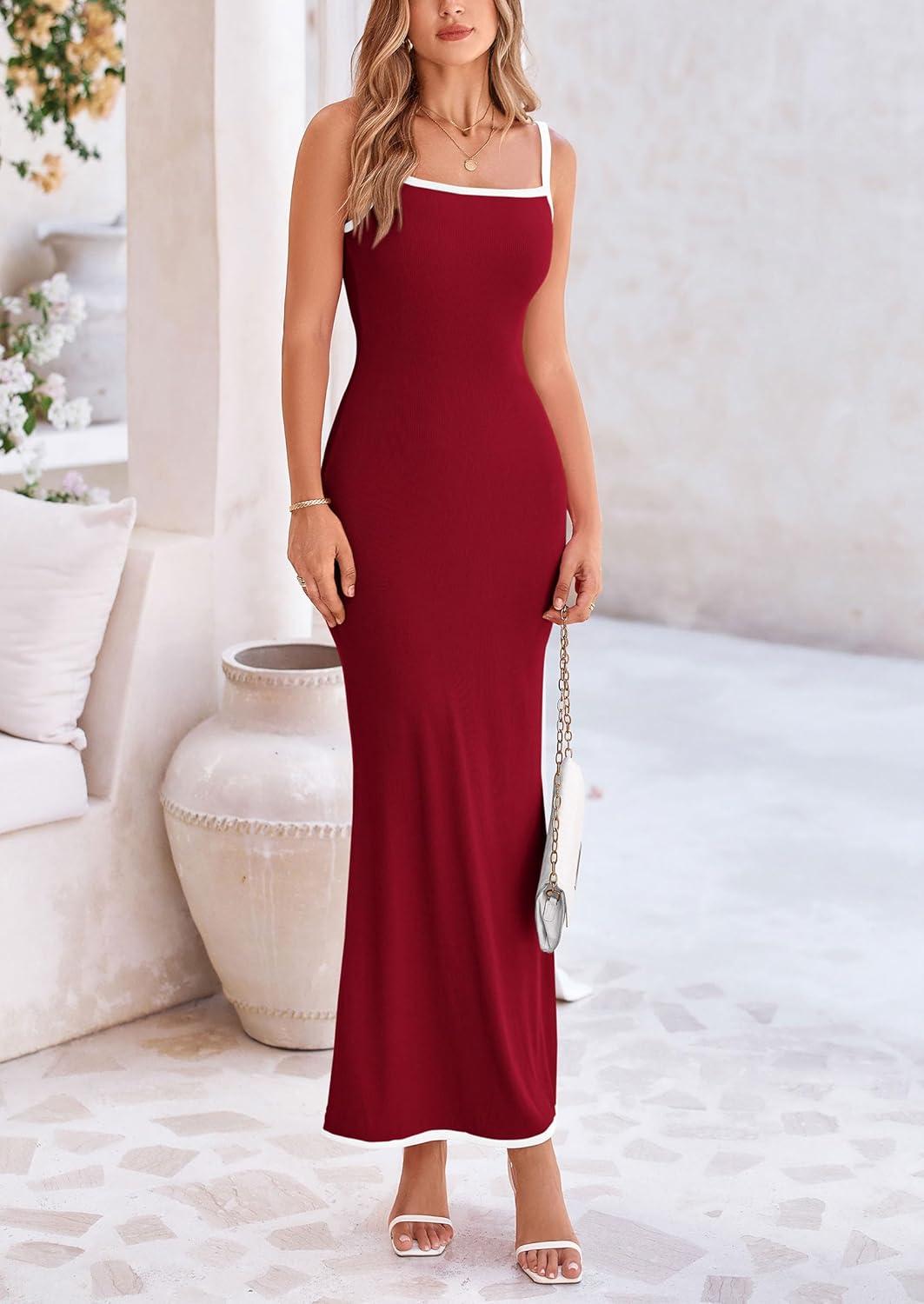 PRETTYGARDEN Spring Dresses for Women 2025 Summer Resort Wear Sexy Bodycon Sundress Spaghetti Strap Vacation Maxi Dress(Wine Red)
