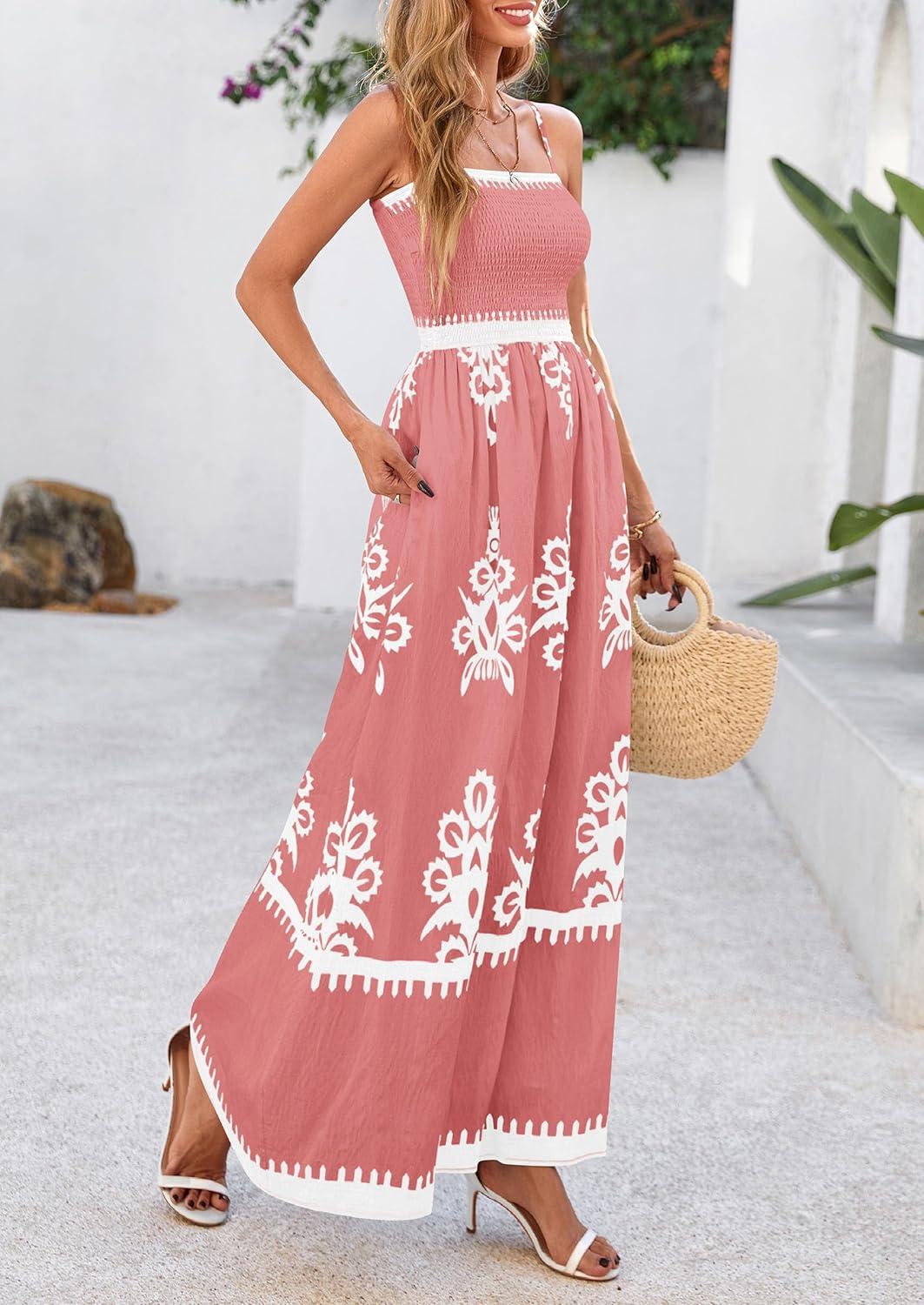 imagePRETTYGARDEN Summer Dress for Women 2025 Floral Sundress Spaghetti Strap Flowy Beach Vacation Boho Maxi DressesPink White Floral