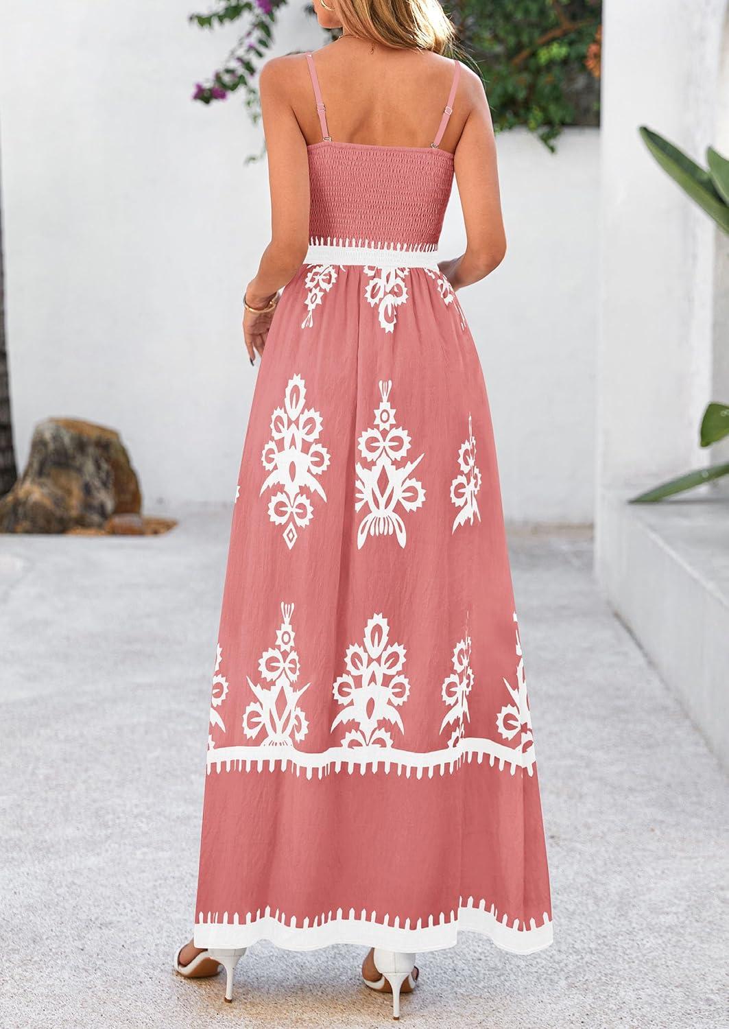 PRETTYGARDEN Summer Dress for Women 2025 Floral Sundress Spaghetti Strap Flowy Beach Vacation Boho Maxi Dresses(Pink White Floral)