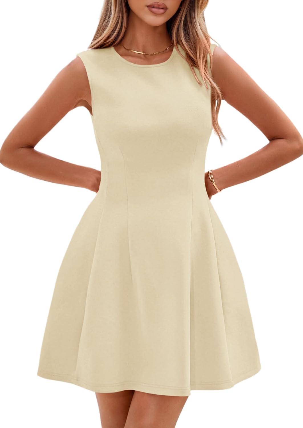 PRETTYGARDEN Summer Dresses for Women 2025 Elegant Classy A Line Business Casual Work Graduation Cocktail Short Dress(Beige)