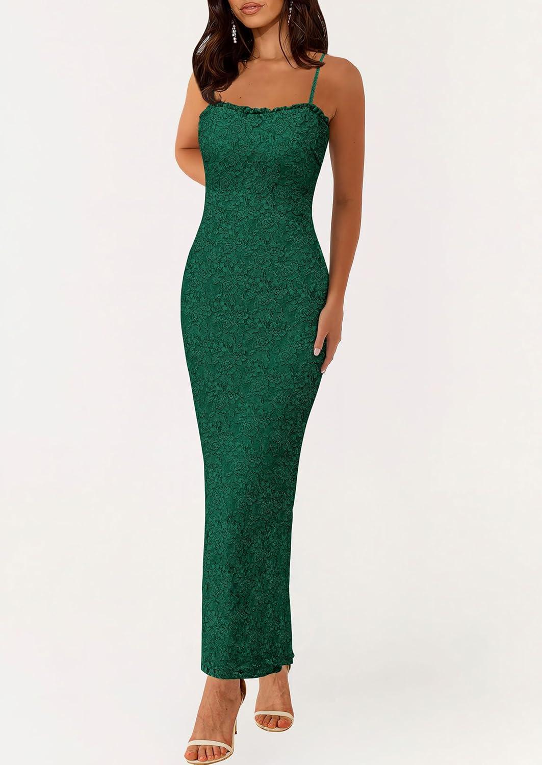 PRETTYGARDEN Summer Dresses for Women 2025 Lace Floral Bodycon Semi Formal Party Wedding Guest Boho Maxi Dress(Dark Green)