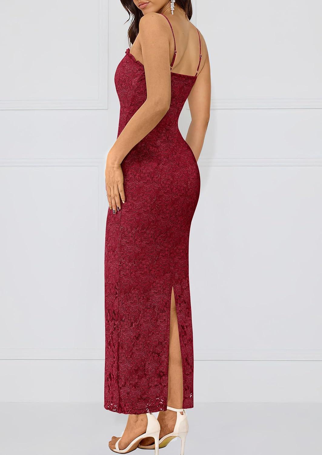 PRETTYGARDEN Summer Dresses for Women 2025 Lace Floral Bodycon Semi Formal Party Wedding Guest Boho Maxi Dress(Red)