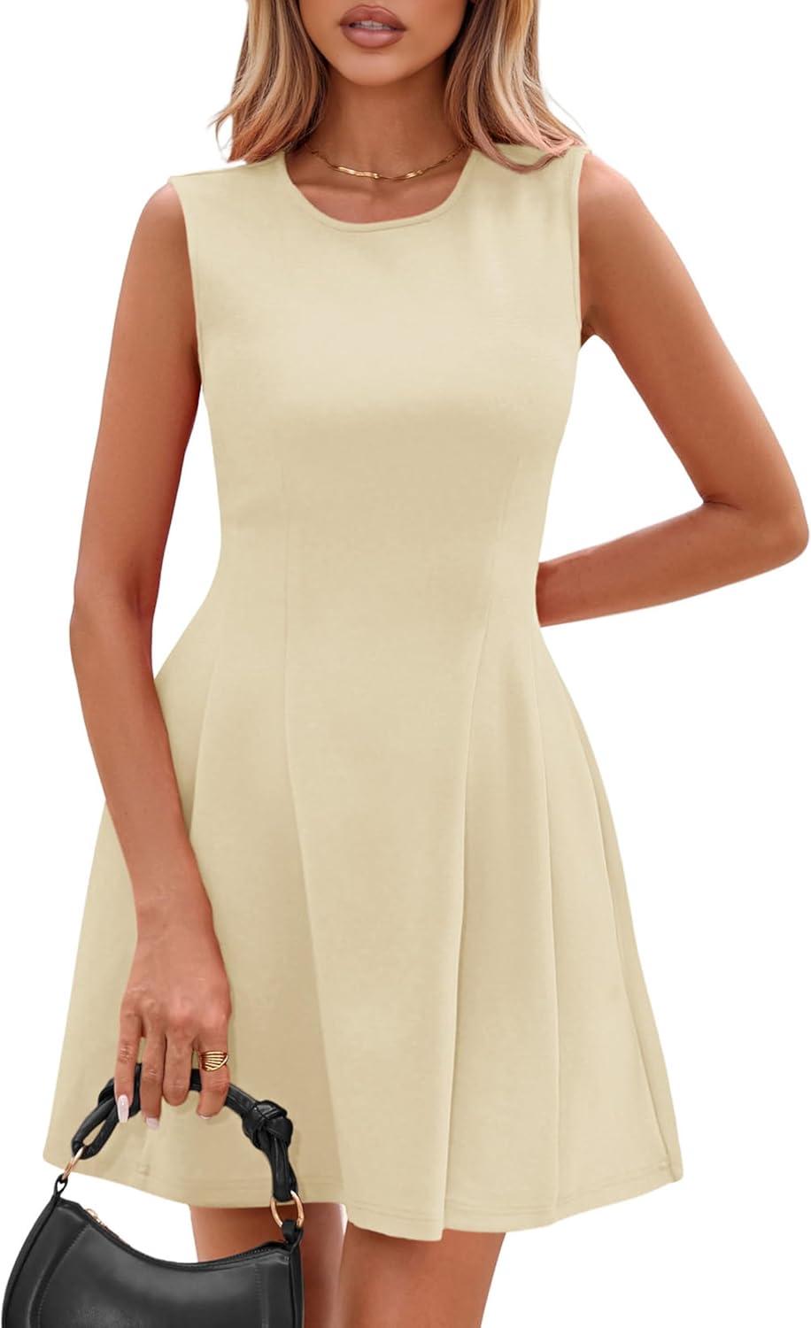 PRETTYGARDEN Summer Dresses for Women 2026 Elegant Classy Spring A Line Business Casual Work Graduation Cocktail Short Dress(Beige)