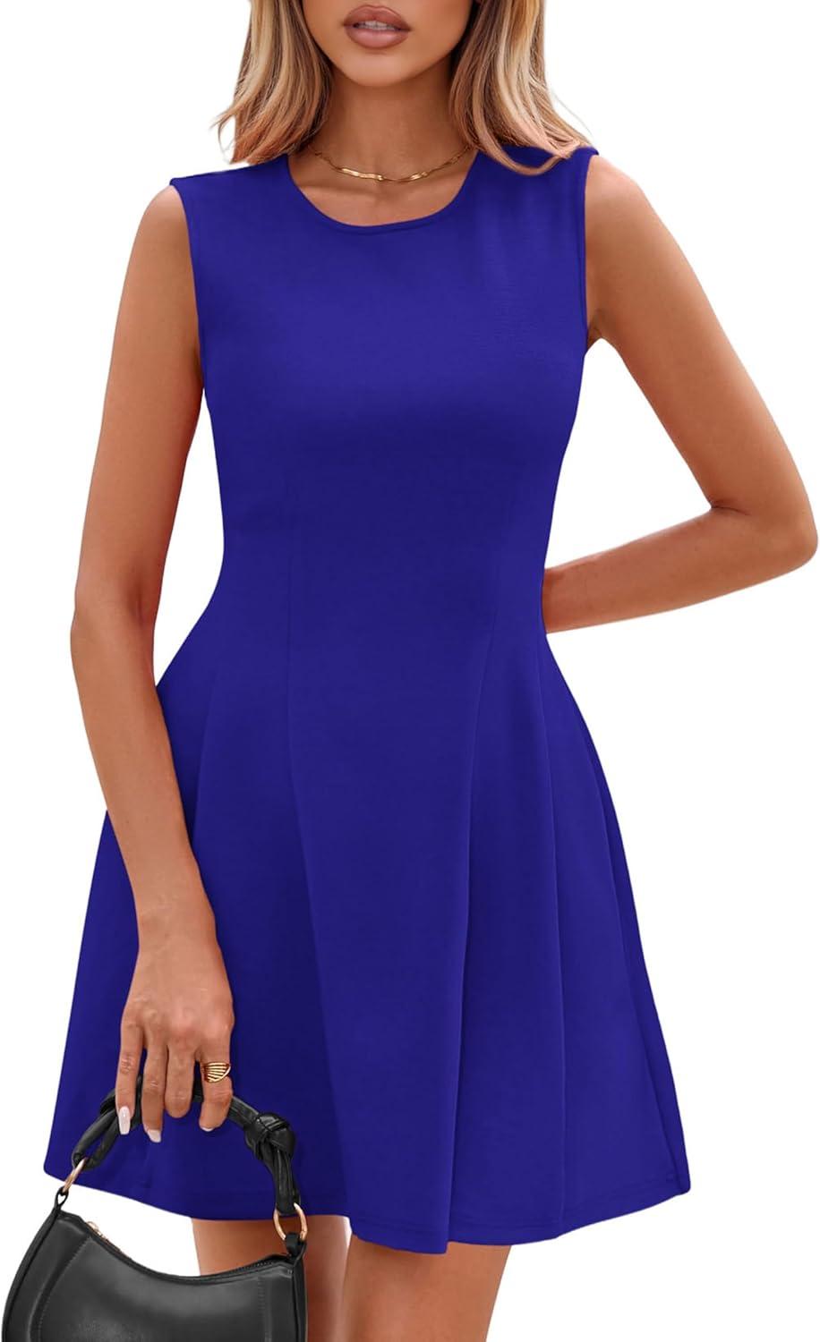 PRETTYGARDEN Summer Dresses for Women 2026 Elegant Classy Spring A Line Business Casual Work Graduation Cocktail Short Dress(Blue)