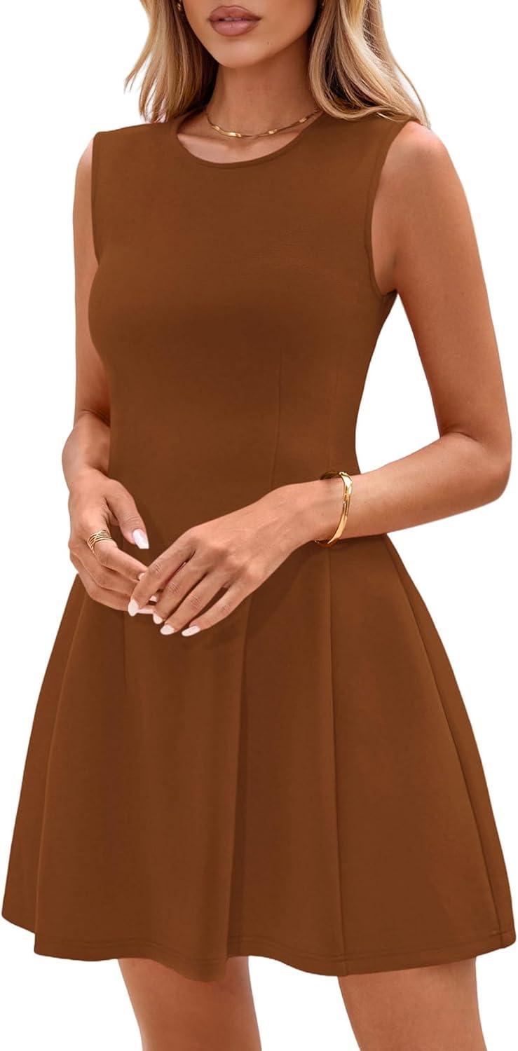 PRETTYGARDEN Summer Dresses for Women 2026 Elegant Classy Spring A Line Business Casual Work Graduation Cocktail Short Dress(Brown)
