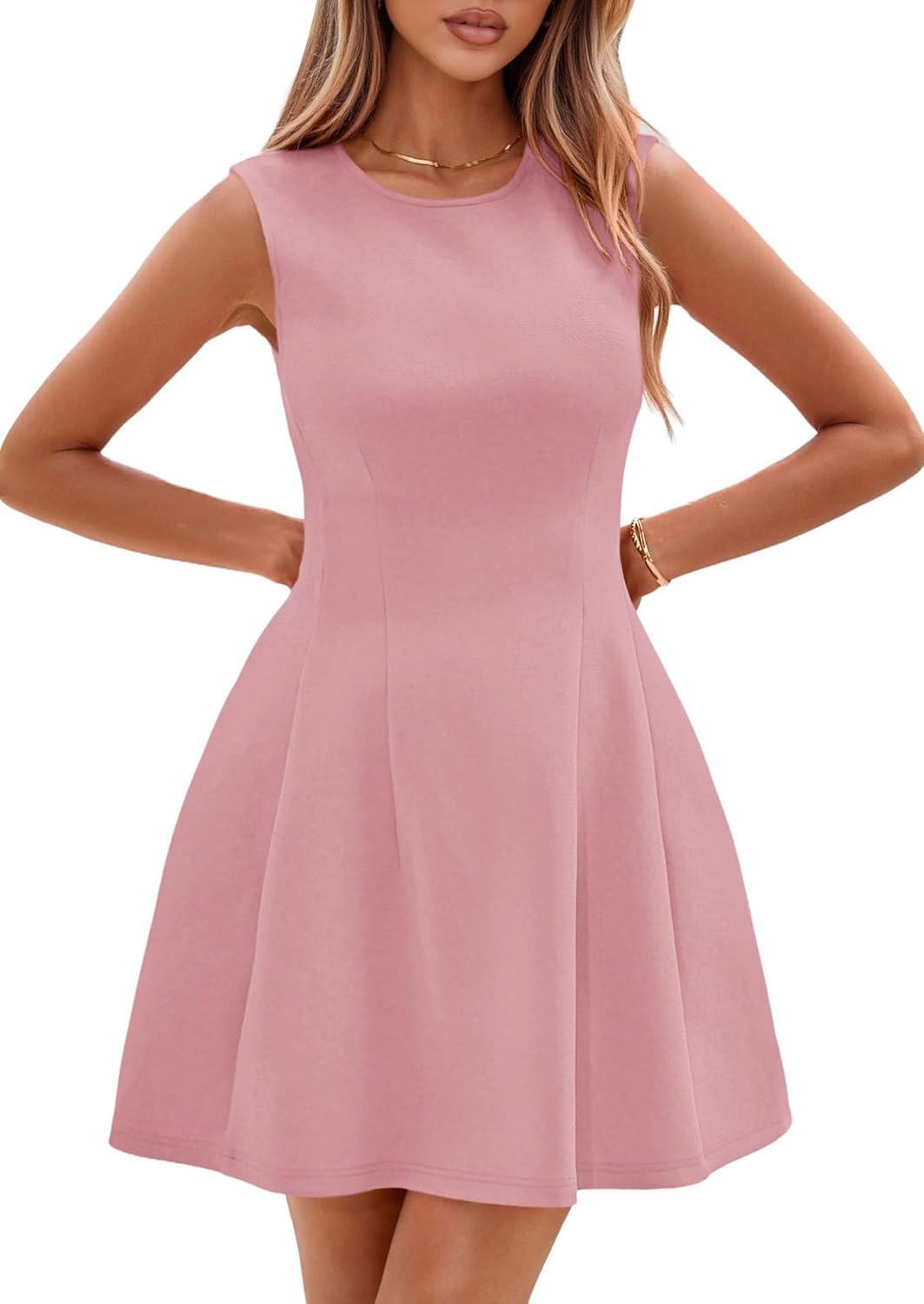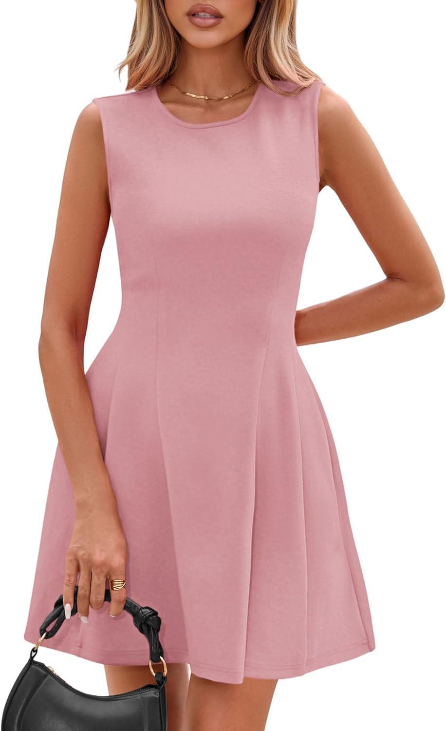 PRETTYGARDEN Summer Dresses for Women 2026 Elegant Classy Spring A Line Business Casual Work Graduation Cocktail Short Dress(Dusty Pink)