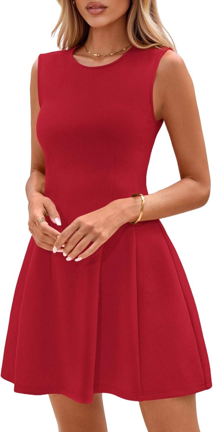 PRETTYGARDEN Summer Dresses for Women 2026 Elegant Classy Spring A Line Business Casual Work Graduation Cocktail Short Dress(Red)