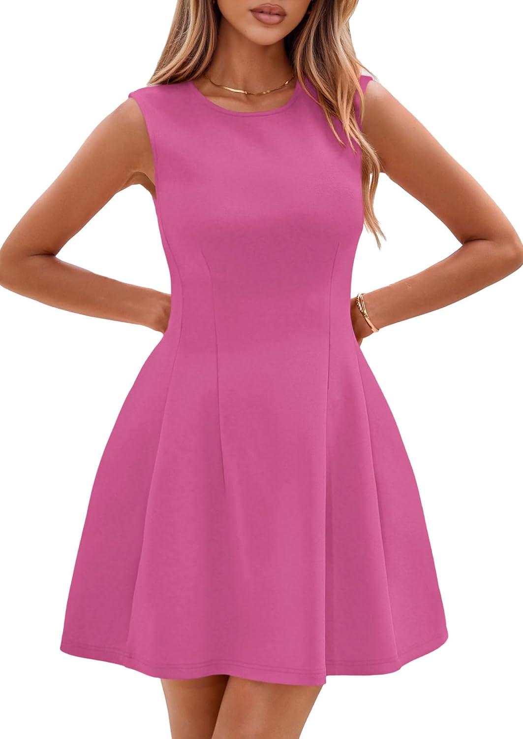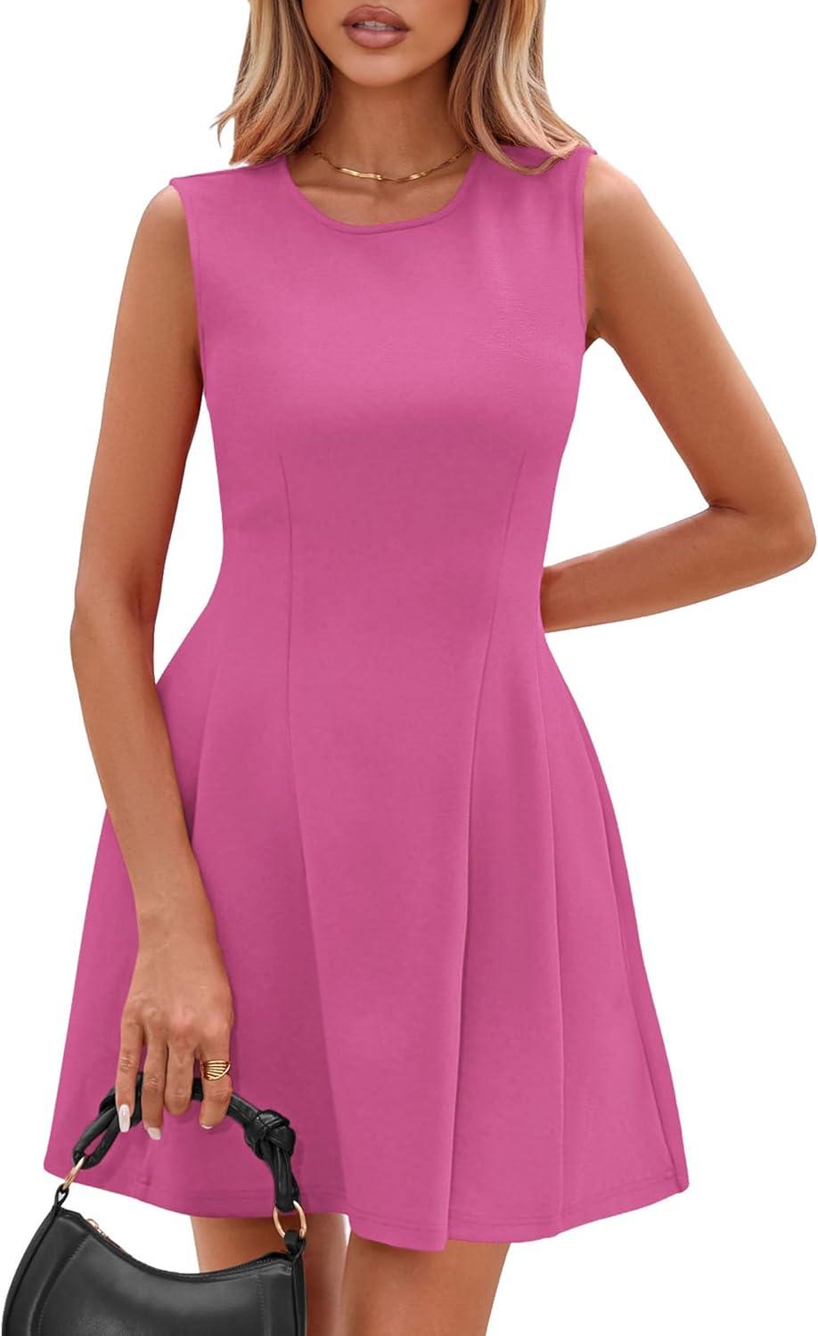 PRETTYGARDEN Summer Dresses for Women 2026 Elegant Classy Spring A Line Business Casual Work Graduation Cocktail Short Dress(Rose Pink)