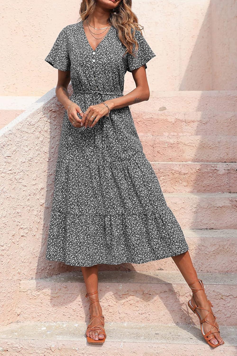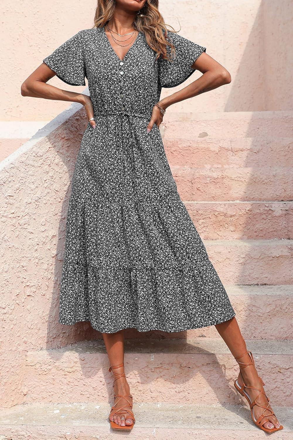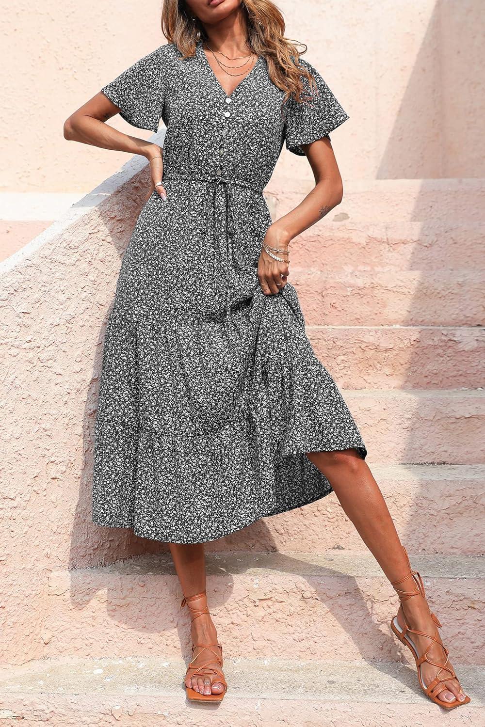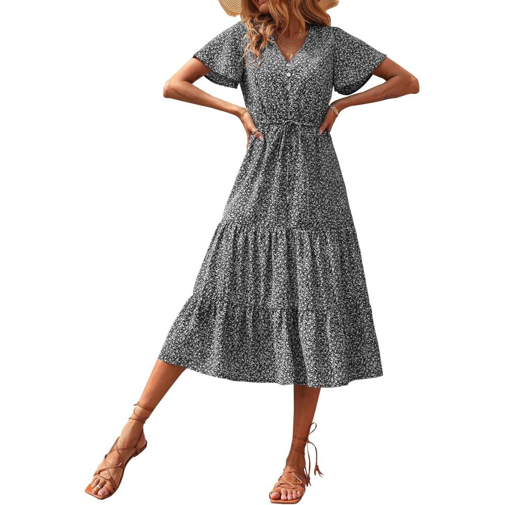 Be the first to review “PRETTYGARDEN Summer Floral Dress for Women 2025 Casual Boho Short Sleeve Maxi Dresses V Neck Tiered Flowy Beach Sundress(Black Floral)”