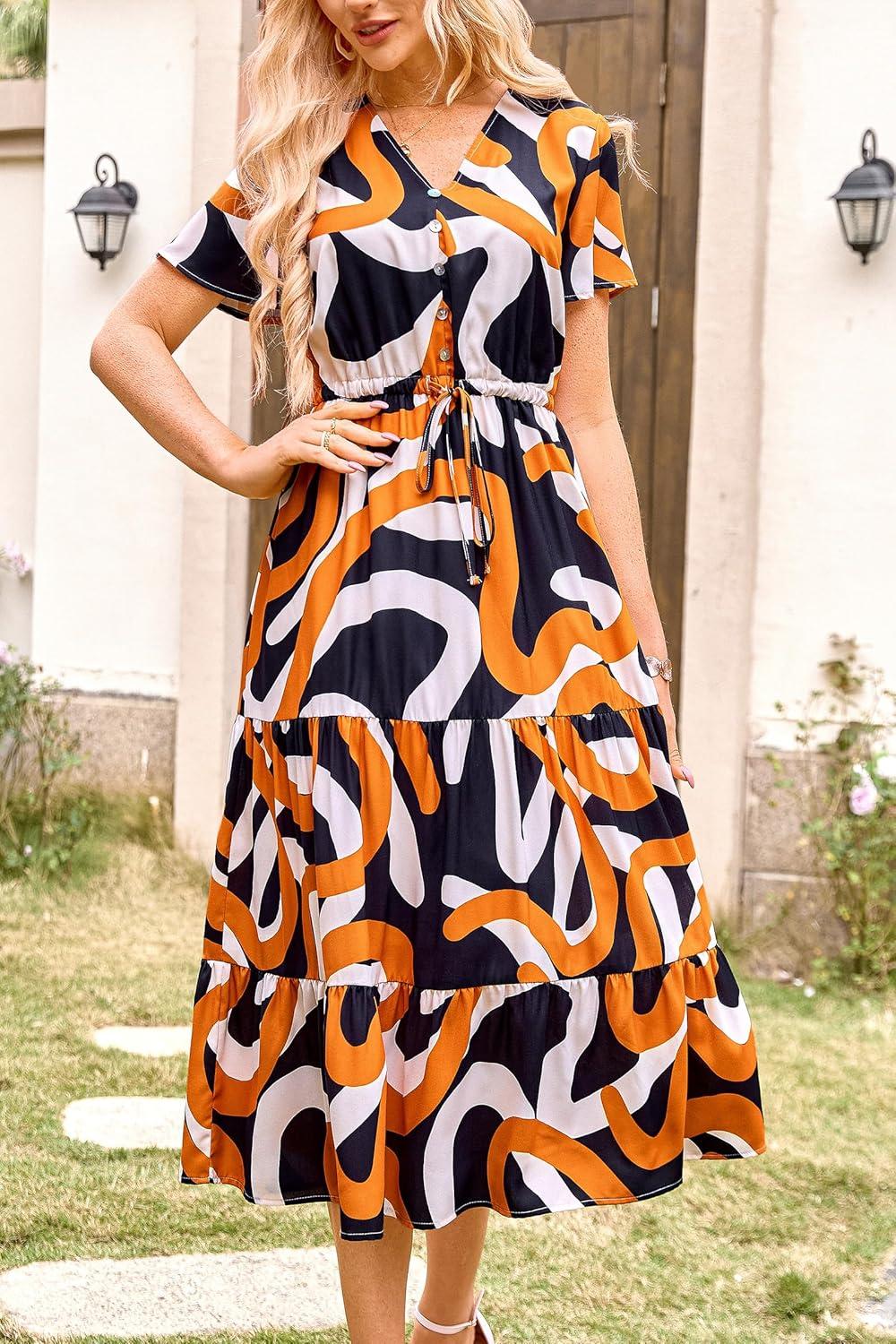 Be the first to review “PRETTYGARDEN Summer Floral Dress for Women 2025 Casual Boho Short Sleeve Maxi Dresses V Neck Tiered Flowy Beach Sundress(Print Yellow White)”