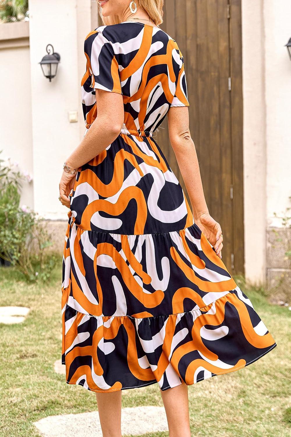 PRETTYGARDEN Summer Floral Dress for Women 2025 Casual Boho Short Sleeve Maxi Dresses V Neck Tiered Flowy Beach Sundress(Print Red)