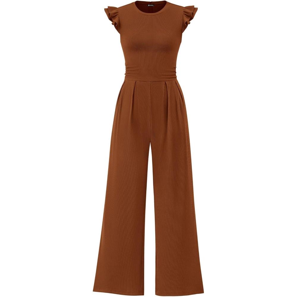 Be the first to review “PRETTYGARDEN Summer Jumpsuits for Women Dressy 2025 Fashion Ruffle Cap Sleeve Romper Crew Neck Rib Knit One Piece Outfits(Coffee)”