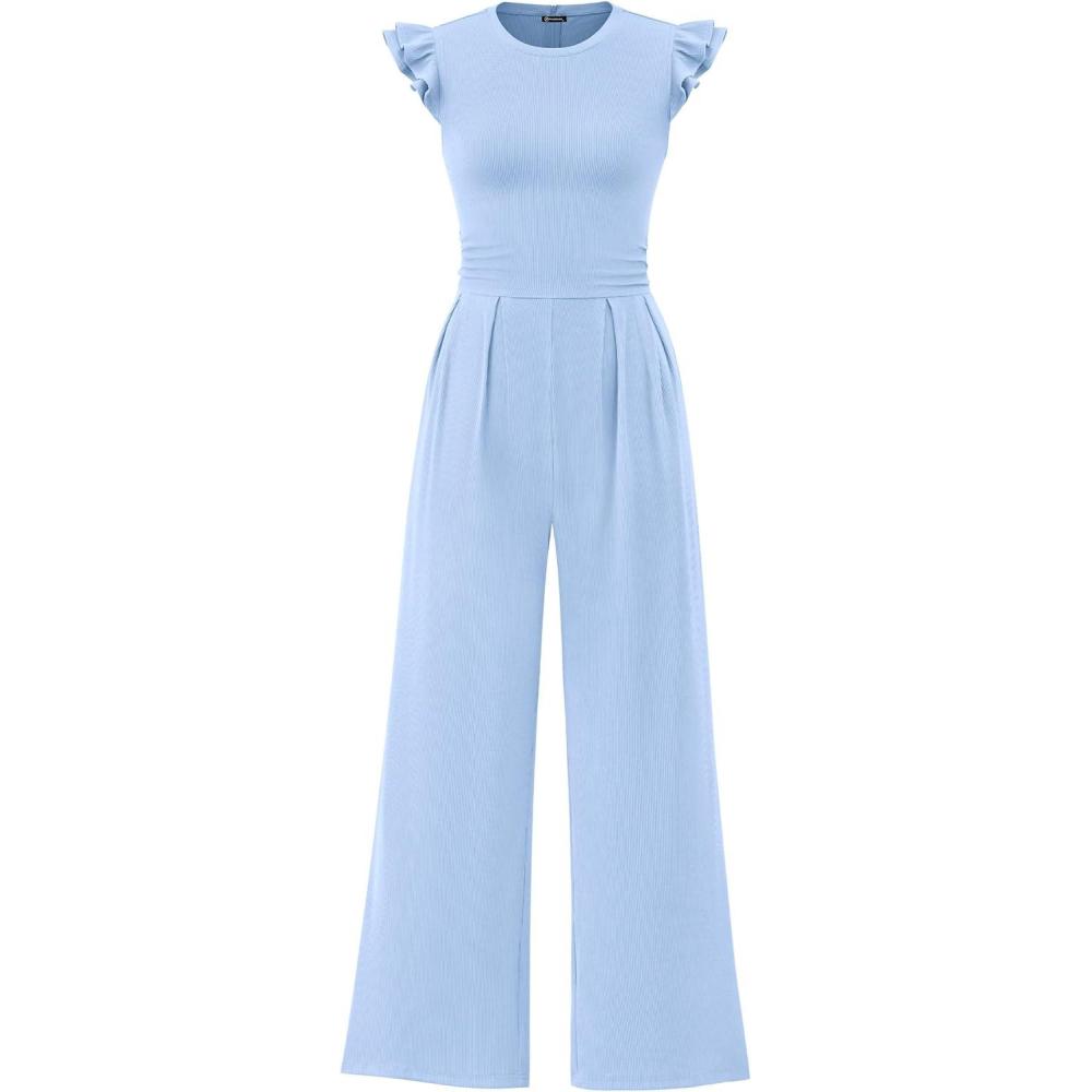 Be the first to review “PRETTYGARDEN Summer Jumpsuits for Women Dressy 2025 Fashion Ruffle Cap Sleeve Romper Crew Neck Rib Knit One Piece Outfits(Light Blue)”
