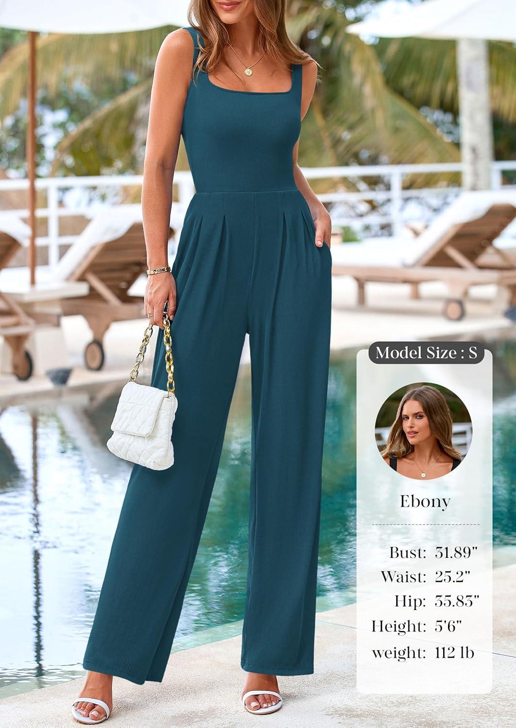 Be the first to review “PRETTYGARDEN Summer Sleeveless Jumpsuits for Women Dressy Square Neck Wide Leg Pants Knit One Piece Rompers Fashion Clothing(Dark Blue)”